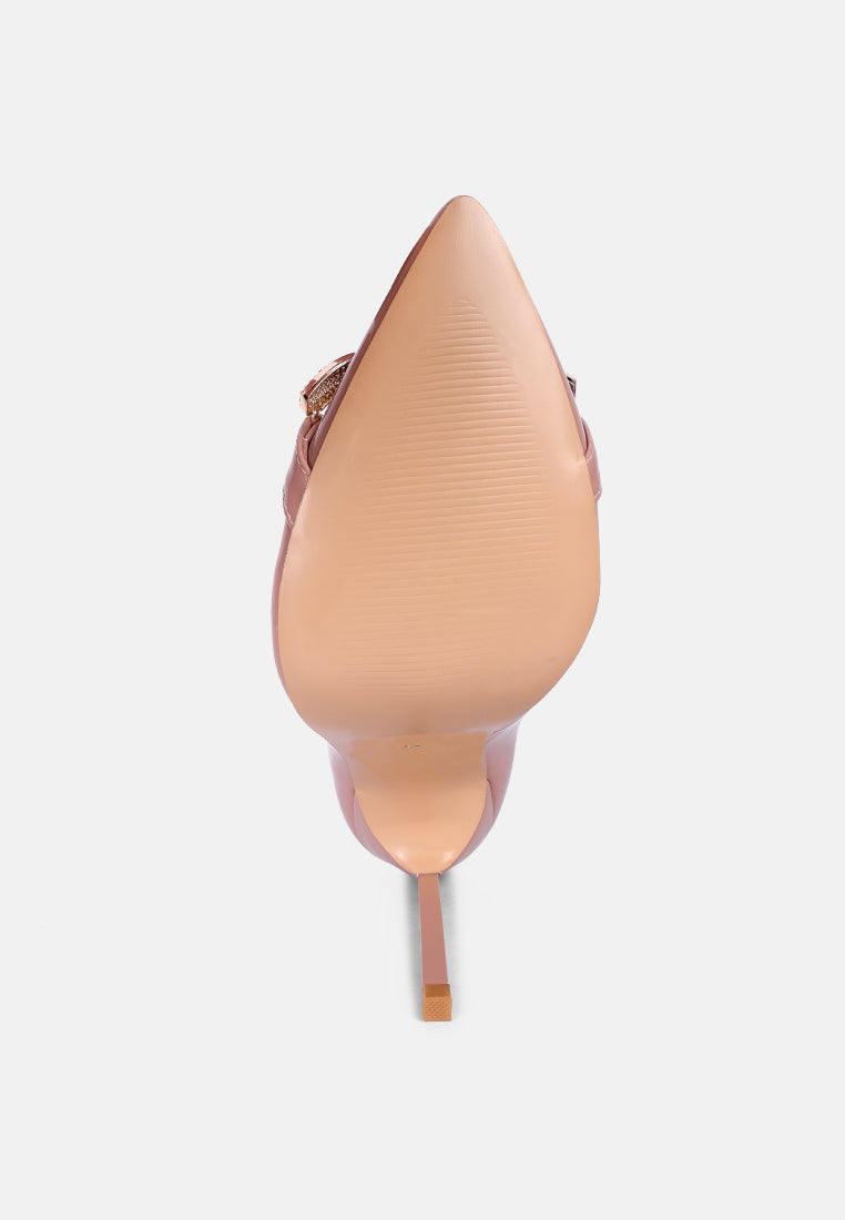 The shoes are sleek, slender, and chic with the touch of rhinestone and gold embellishment on the front which elevates the whole look of the sandals. The pump shoes have cushion padded innersole that offers comfort and cuts strain. The style is a classic and would look lovely as party heels for bachelorette and cocktail parties.