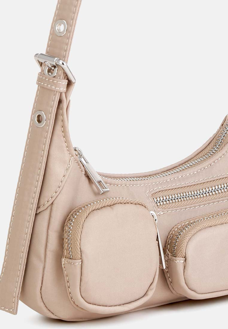A shoulder bag designed for travel, running errands and everything in between. The cute bag is as versatile and lightweight as it can get with chic cargo pocket details and one outer zipper compartment to store all your little essentials on the go.