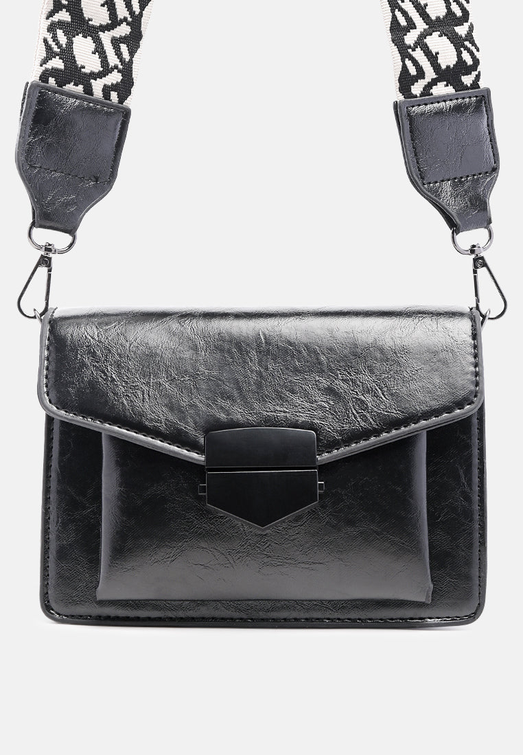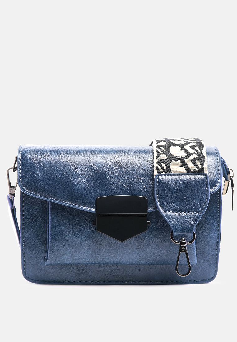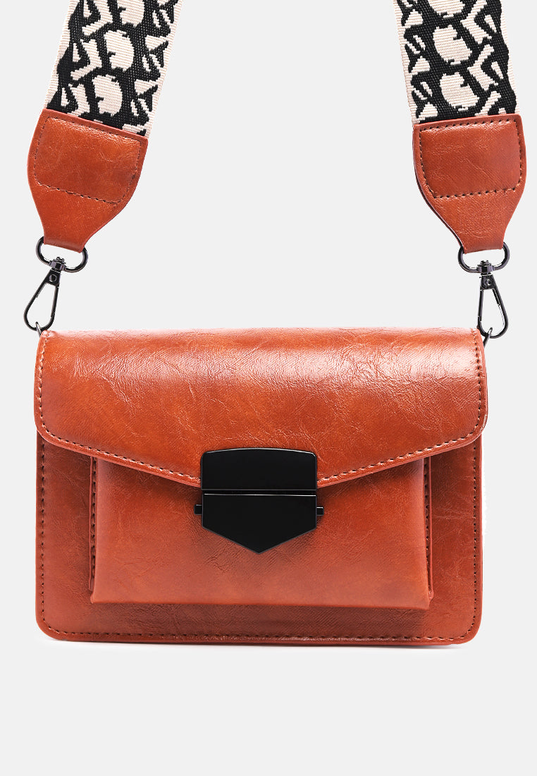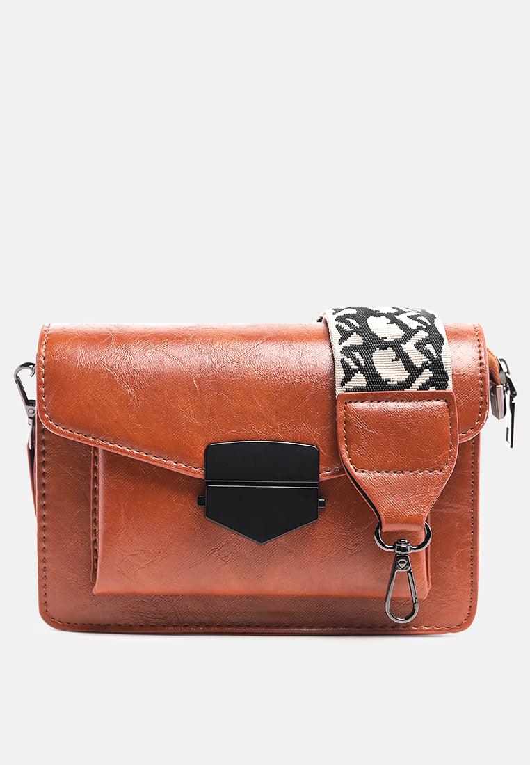 Soft PU Sling bag with broad canvas strap. A plush faux leather bag with single zipped compartment to keep all basic and cards safe.