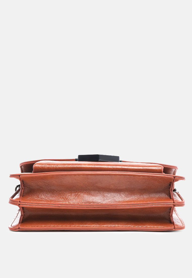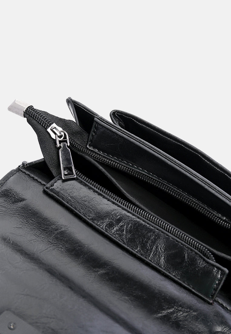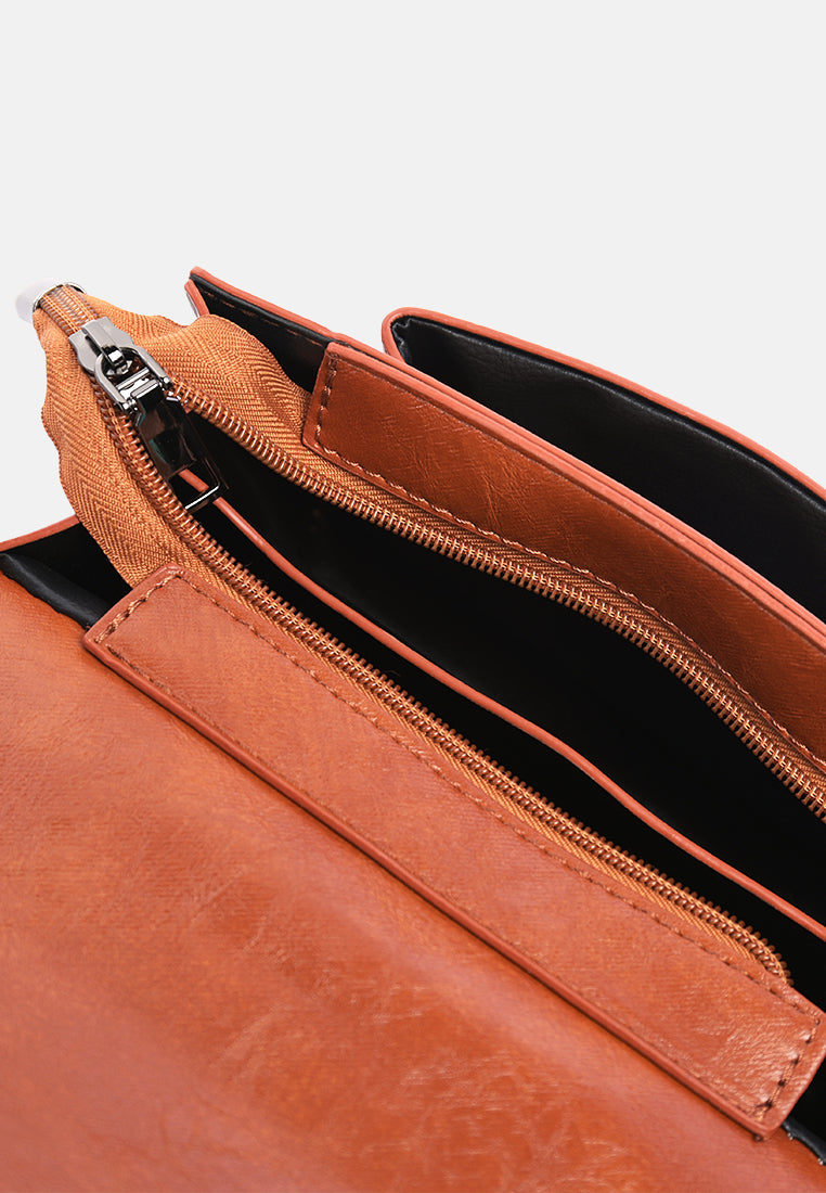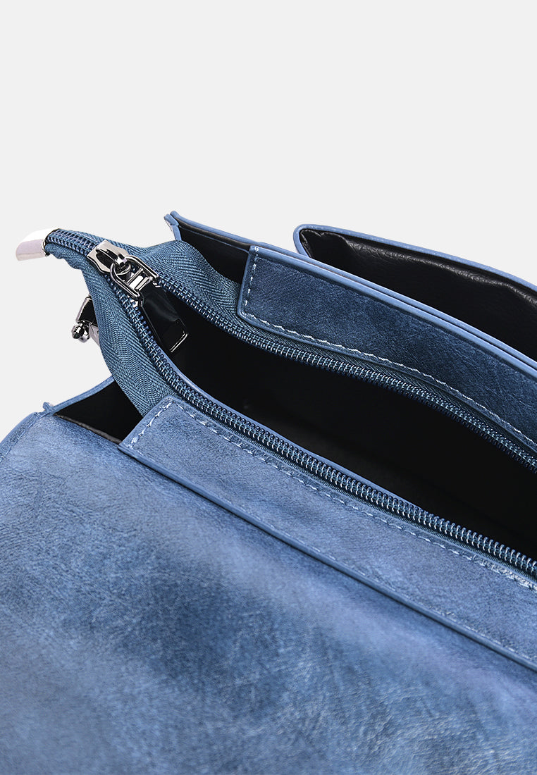 Soft PU Sling bag with broad canvas strap. A plush faux leather bag with single zipped compartment to keep all basic and cards safe.