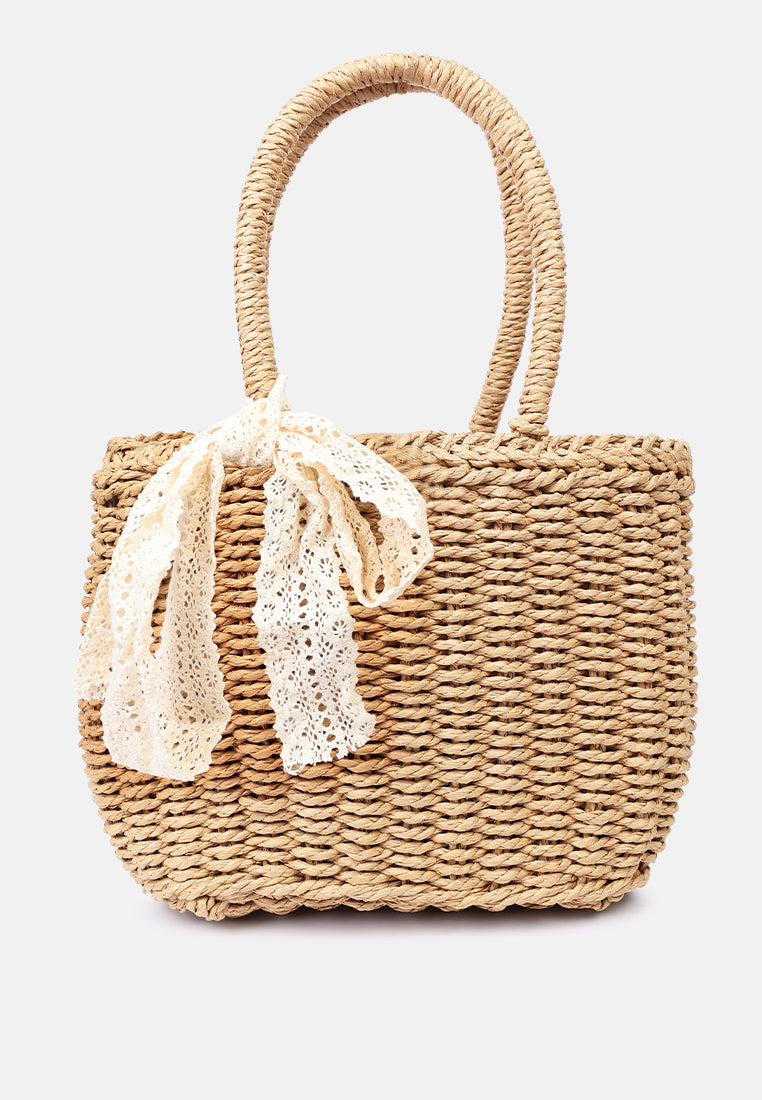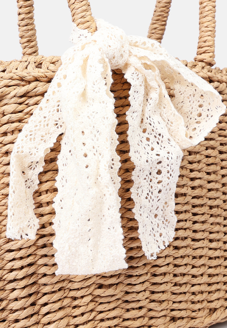 Lace Ribbon Woven Handbag