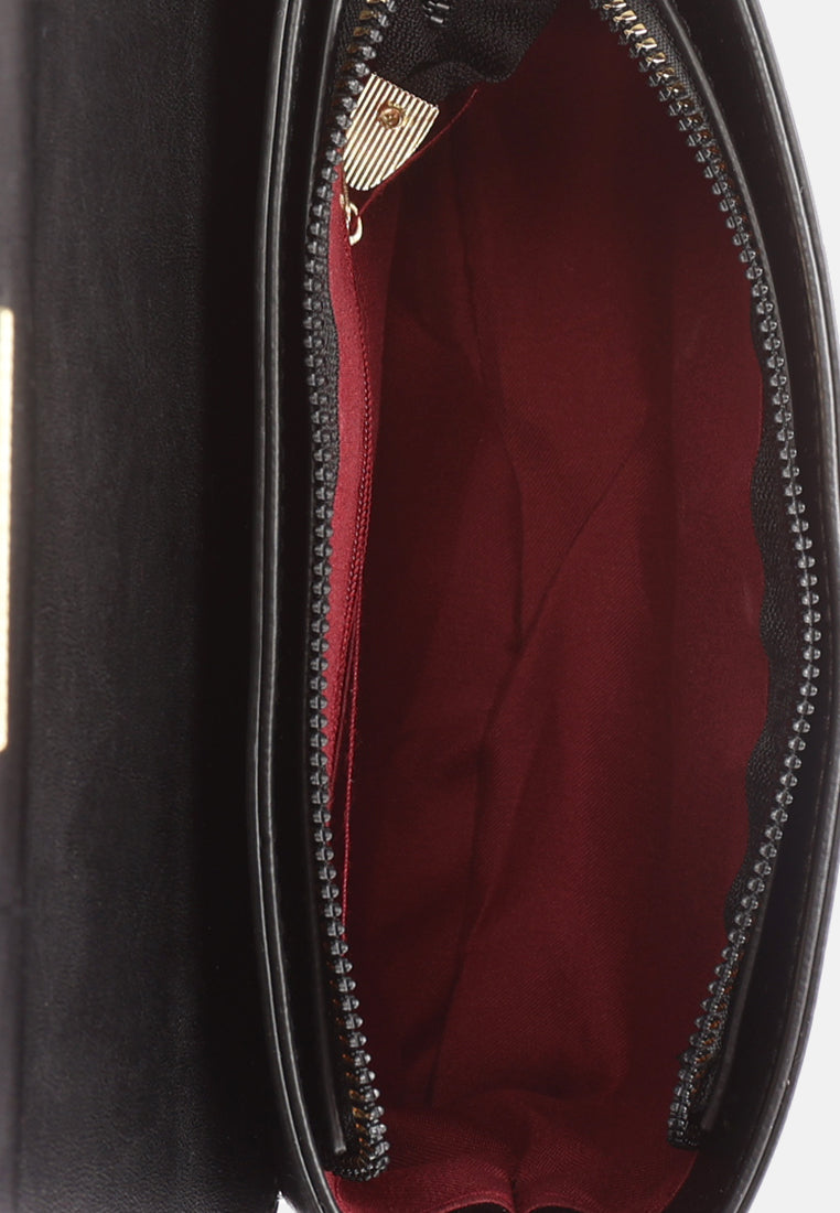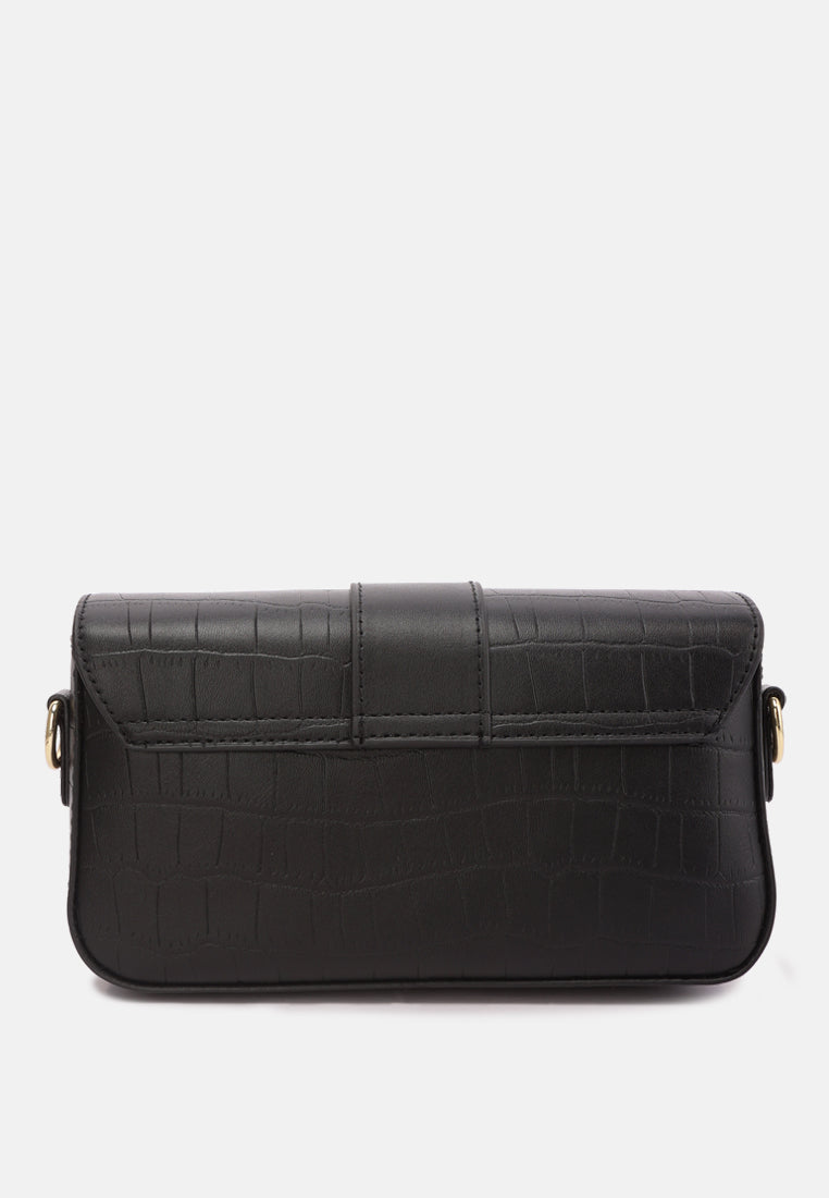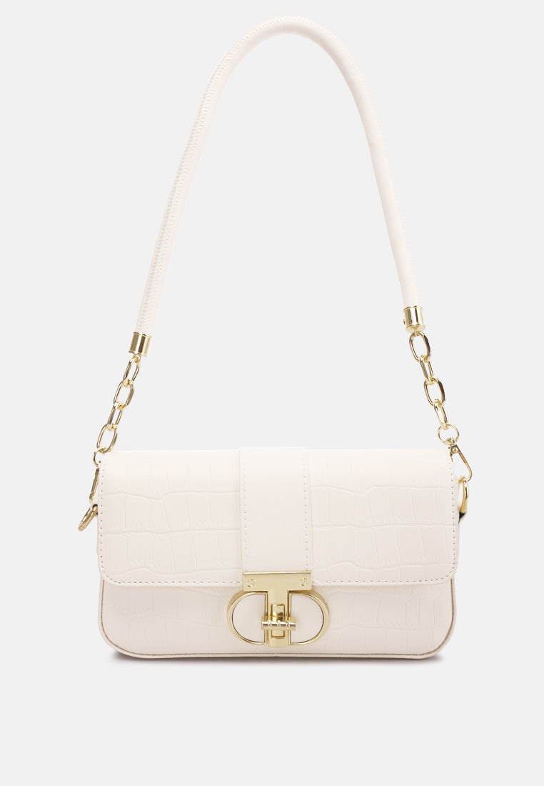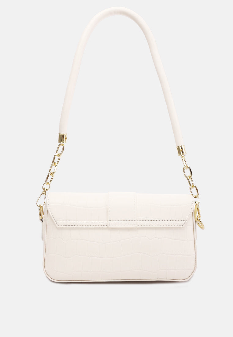 Metallic Buckle Baguette Handbag