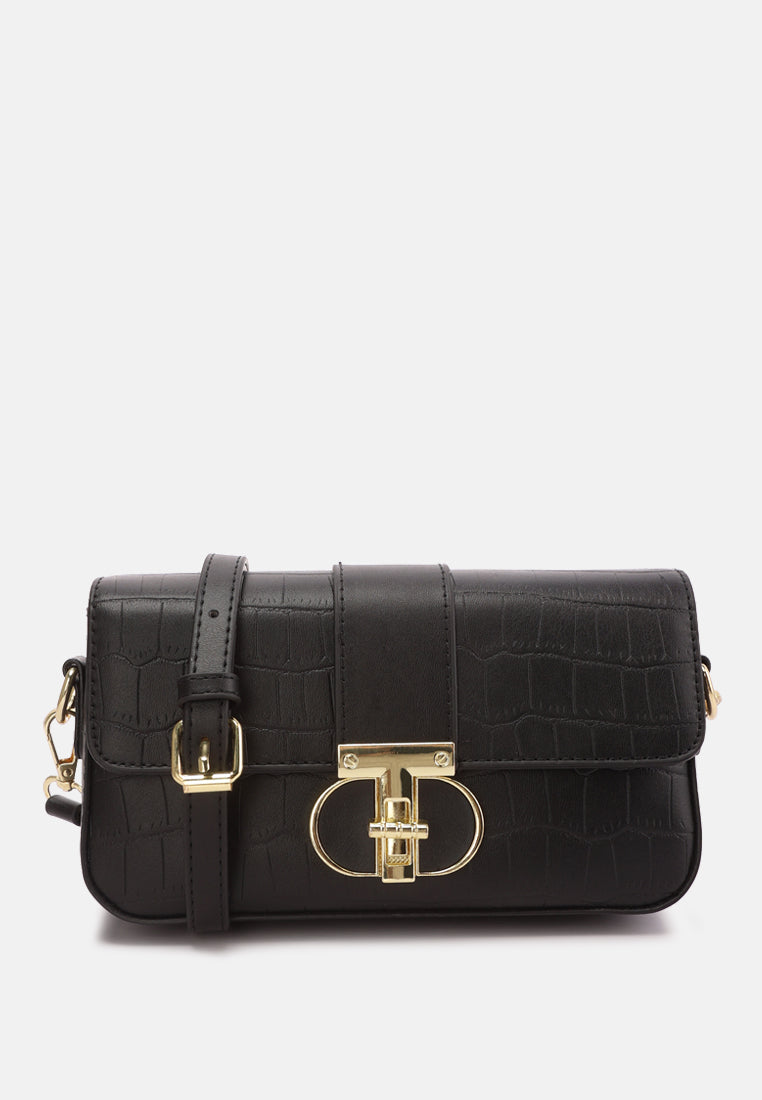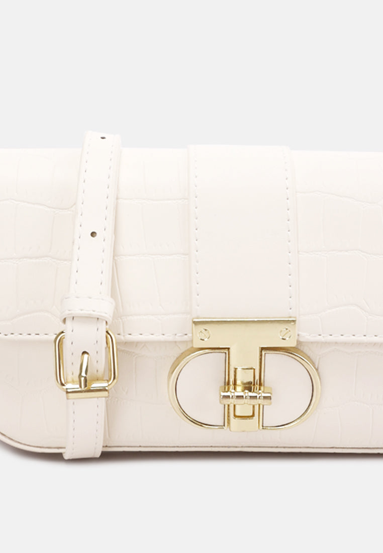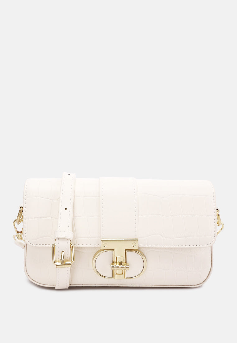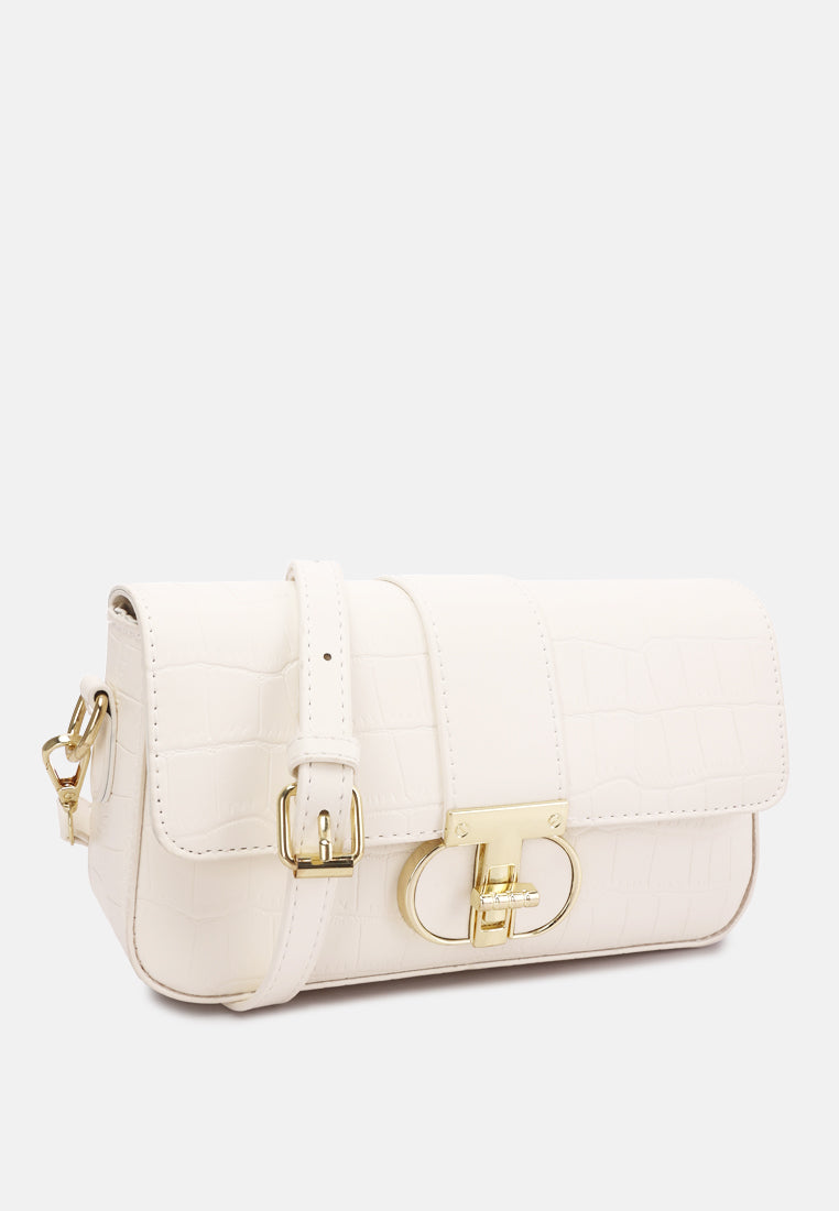 Metallic Buckle Baguette Handbag