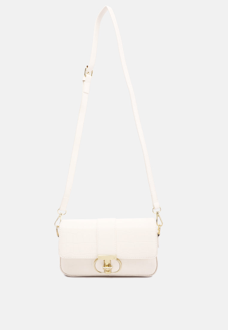 This small, comfortable crossbody bag with removable and adjustable shoulder straps works great when out shopping, partying, traveling, and every occasion in between. But hold on, the metal buckle closure detail is to look out for!