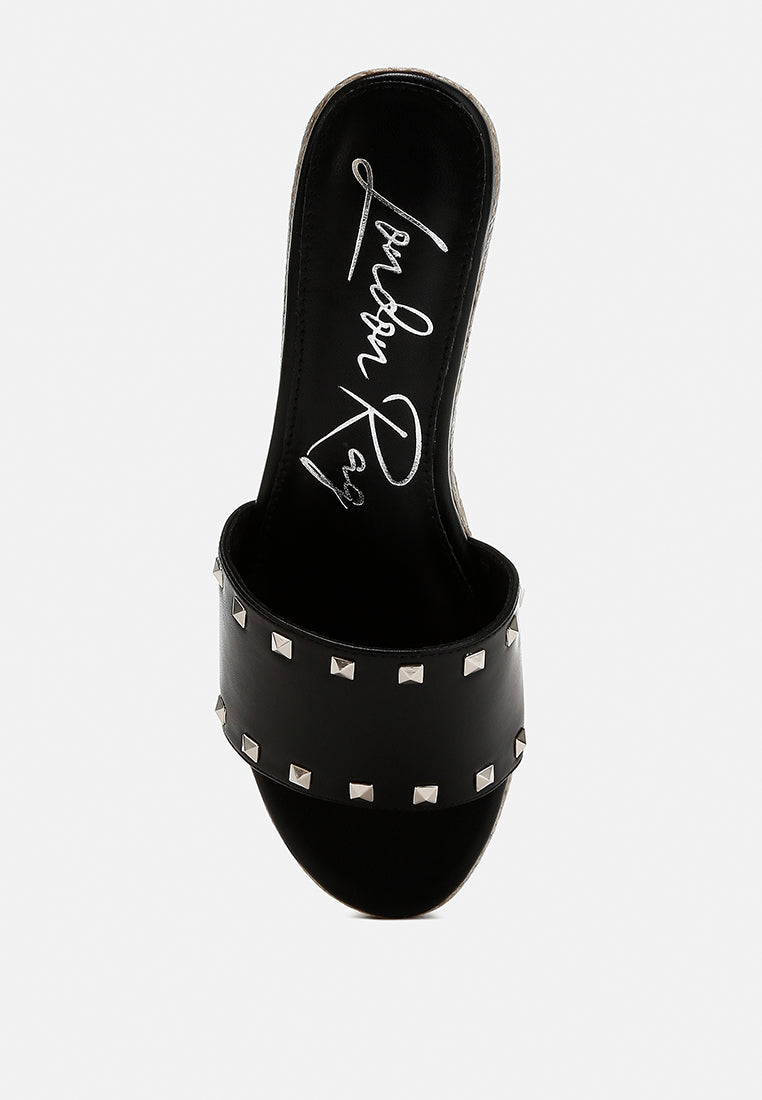 Redefining the espadrilles aesthetic with the metallic touch which adds an intriguing visual element. The stud embellishments also add an edgy element which makes the footwear standout. The espadrilles wedge sandals are perfect for summer beach parties!