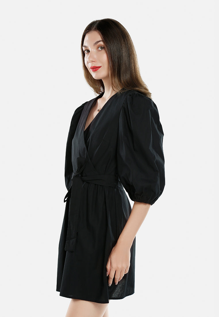 With some fun voluminous elasticated cuff sleeves and a detachable belt, this fit-and-flare dress redefines your waistline and how! Made with 100% cotton, the light-as-air dress is the best outfit for an easy, breezy look designed to hit above the knee.