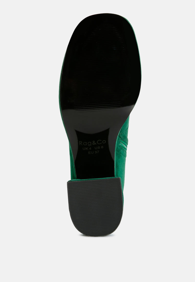 Mid High block heeled comfortable and plush ankle boot, crafted in stretchable fine suede is class apart. Comes in trendy square cut toe and block heels, this pair is easy to wear with side zipper opening.