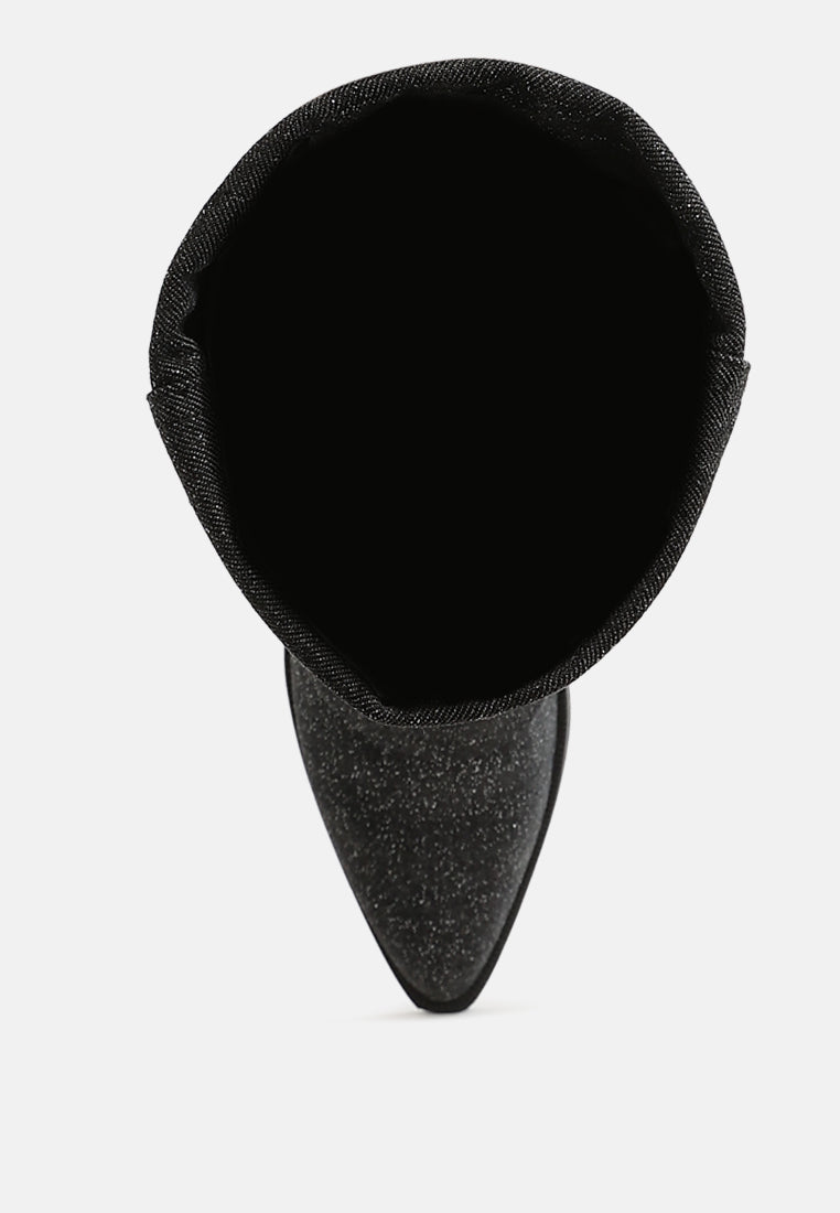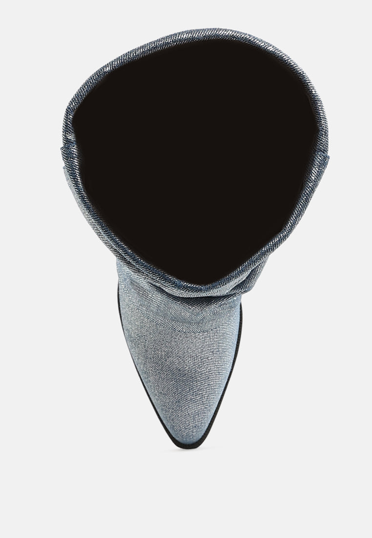 These ultra-chic denim ankle boots blend classic style with a modern take, featuring a comfortable block heel. Finished with a stylish slouchy silhouette, these pointed-toe beauties are the perfect match for mini dresses or partywear in your wardrobe!