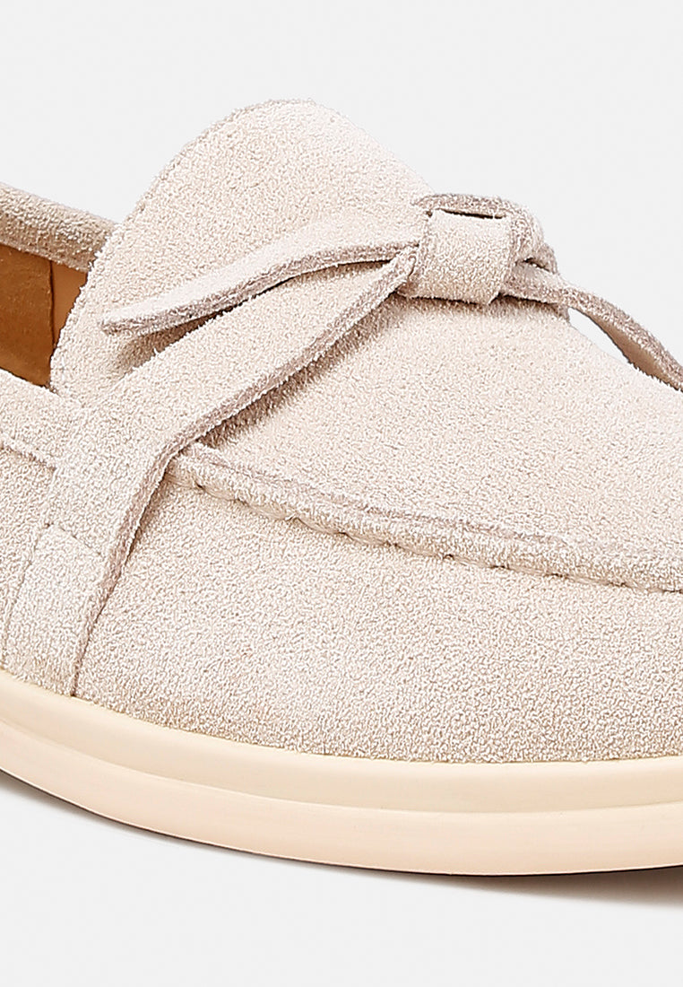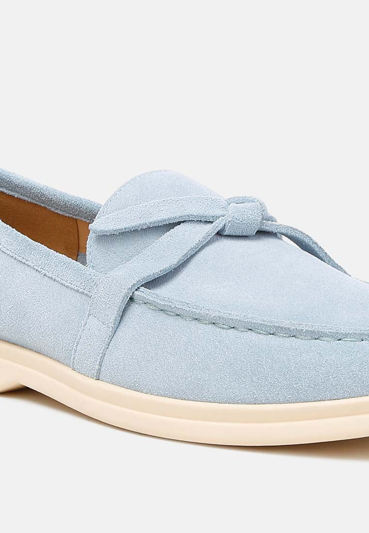 Crafted from luxurious suede, these modern-day loafers feature mock stitch detailing and knot accents on the vamp. Whether paired with casual attire or formalwear, they offer both style and comfort to carry you through the season with ease.