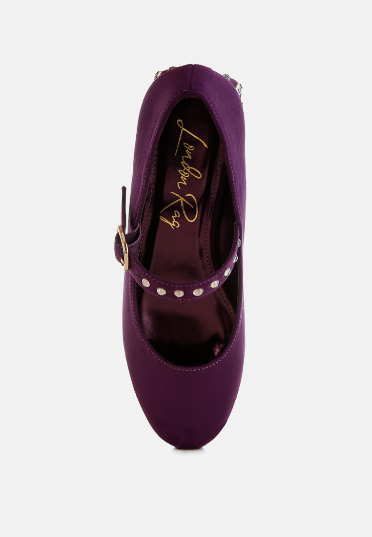 women studded mary jane pumps#color_purple
