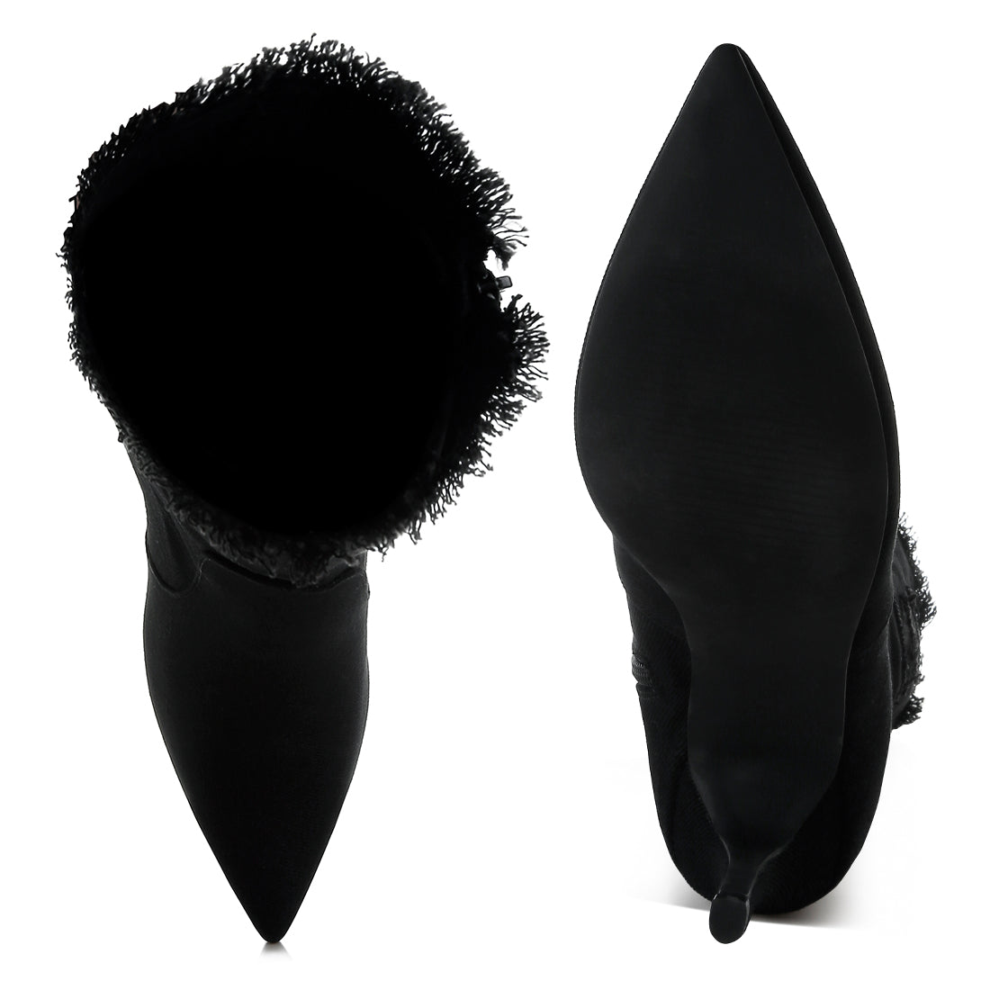Introducing your new favorite distressed denim calf boots, straight from the '90s! With a convenient zipper closure, frayed raw-edge trim, and a classic stiletto heel, these boots are total head-turners. Featuring stylish paneling detail and a 3.5-inch heel, they're perfect for rocking a chic denim-on-denim look.