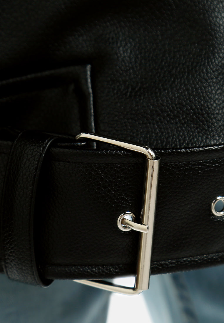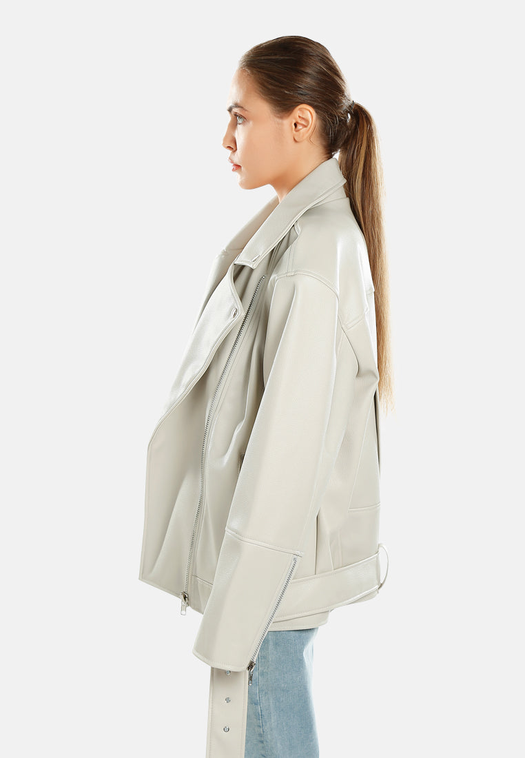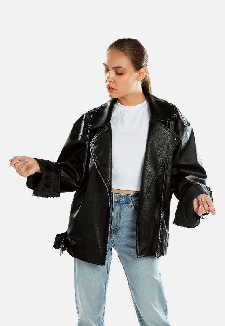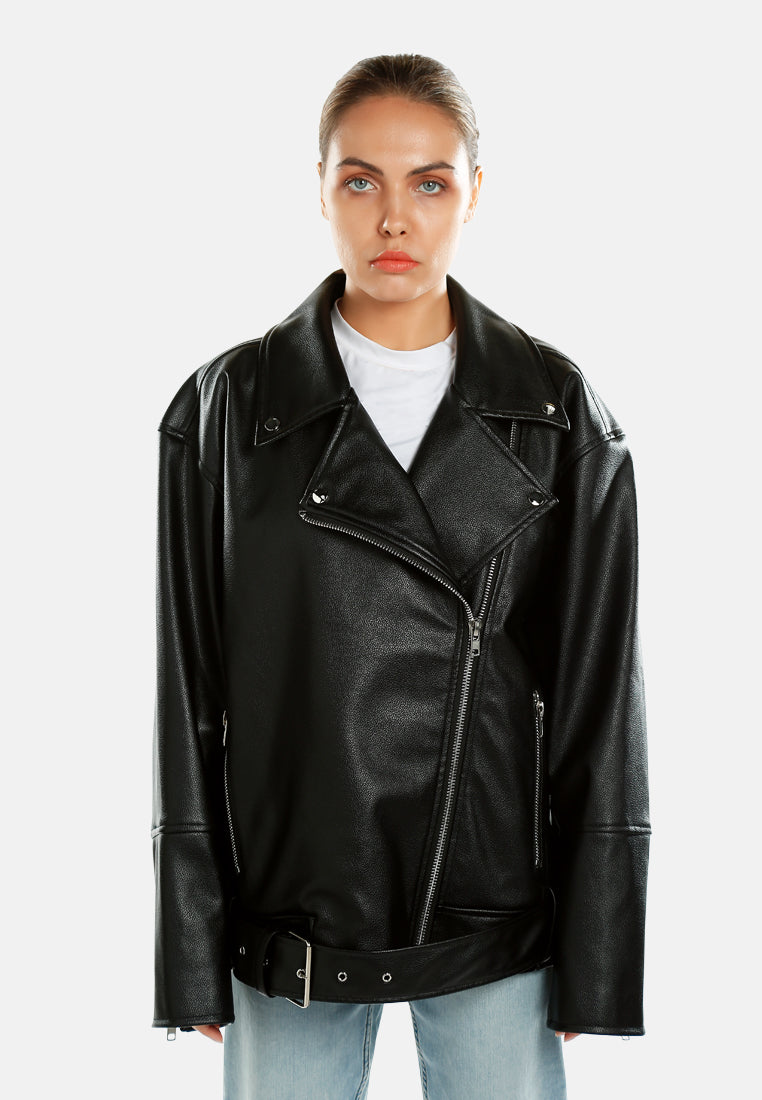 Women Belted Oversized Biker Jacket