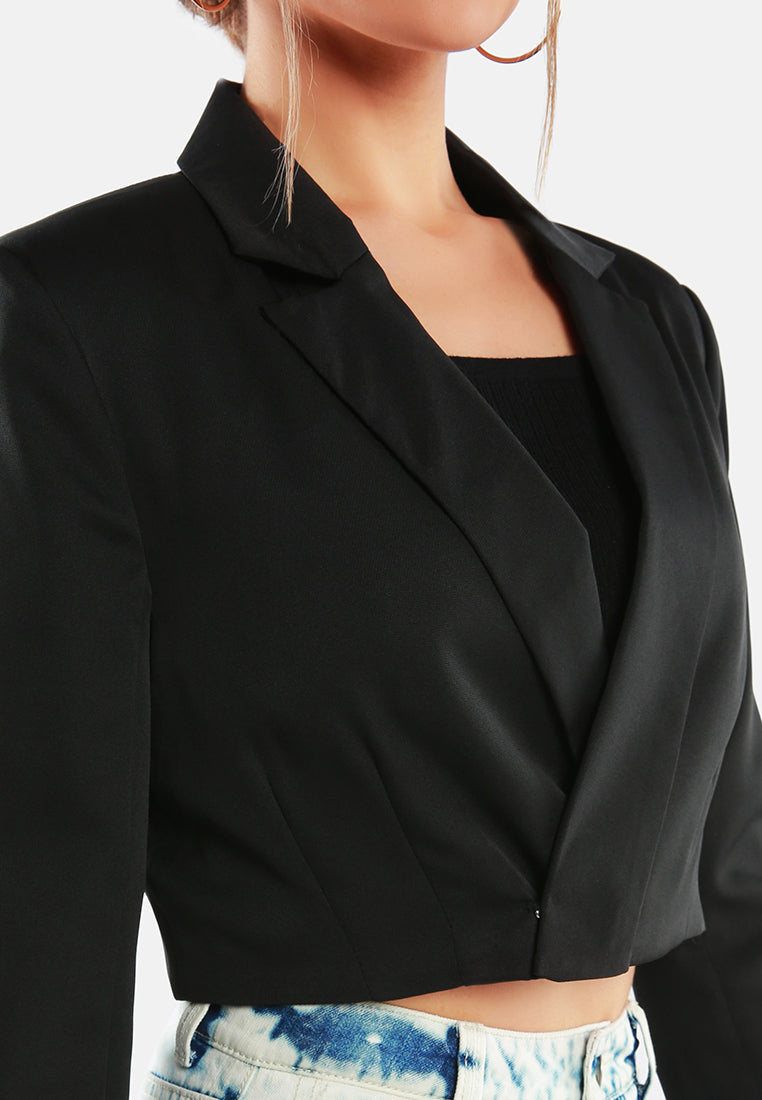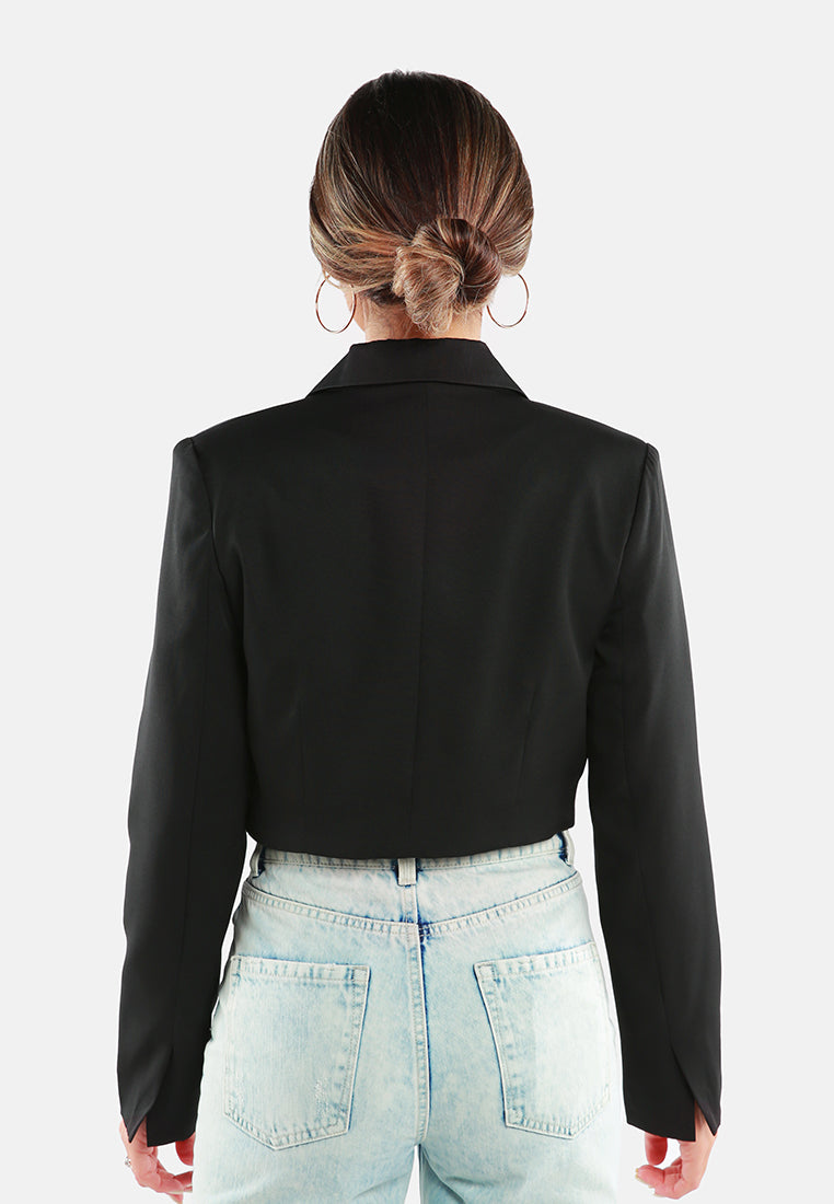 This half-cut blazer is our unique experiment and fun in workwear. Inspired by boardroom and lady boss vibes, this jacket is a versatile piece that can elevate the look at parties or even casual lunches or dinners, or even wear alone as a top.