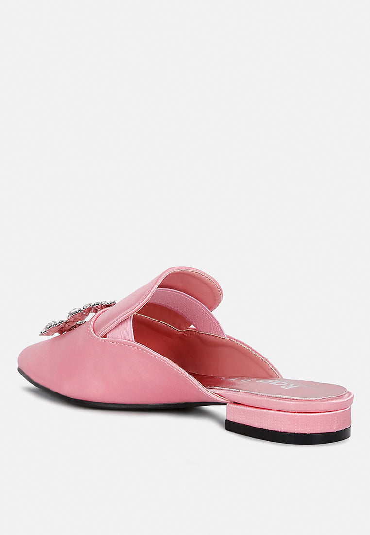 The slip on mules are constructed with beautiful satin and the diamond buckle on the front takes it a notch up. The soft cushion innersole cuts strain. The mules are a must-have if you want luxury and comfort all in one.