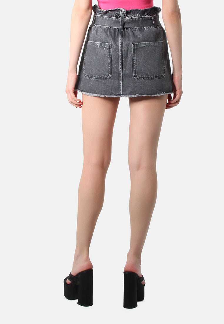 Women Paperbag Denim Mini Skirt