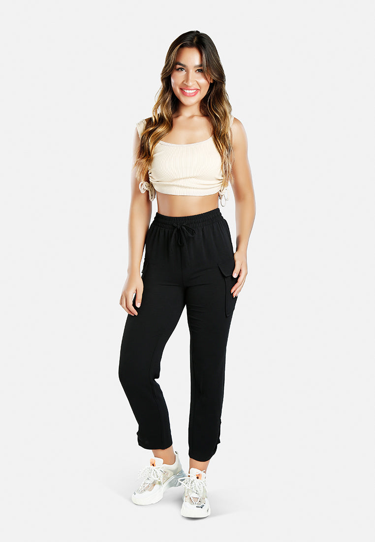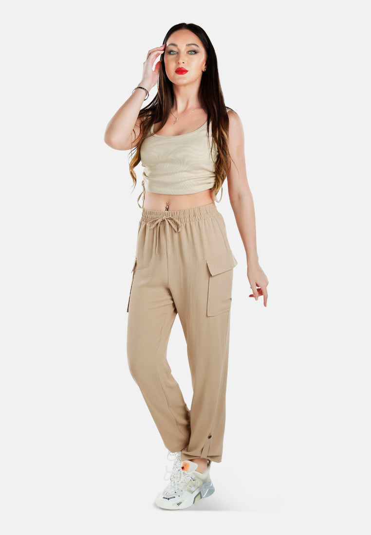 Revamp your wardrobe with this fashionable Drawstring Waistband Cargo Trousers. These versatile and trendy pants offer the perfect blend of fashion and functionality. The adjustable drawstring waist ensures a comfortable fit, while the cargo pockets add a touch of utility chic. Stay on-trend effortlessly with these must-have trousers.
