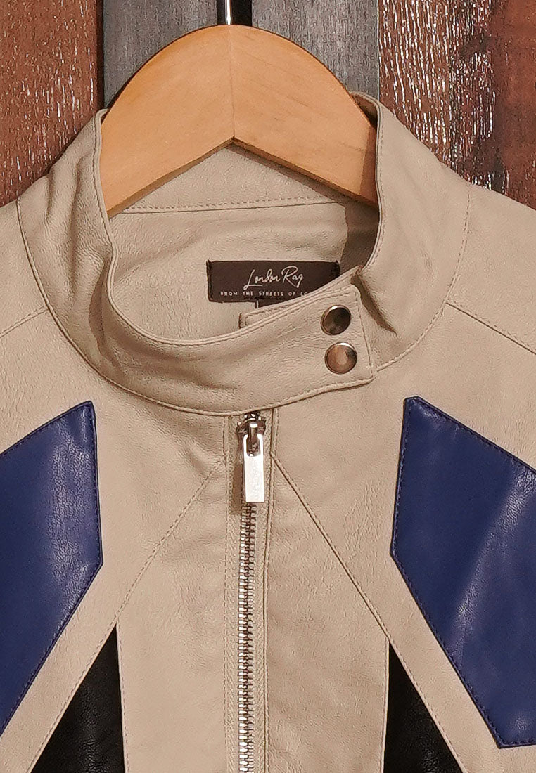 Make a cool addition to your closet with this faux leather jacket featuring a dual tone paneling detail. The front zip closure makes it practical and stylish at the same time.