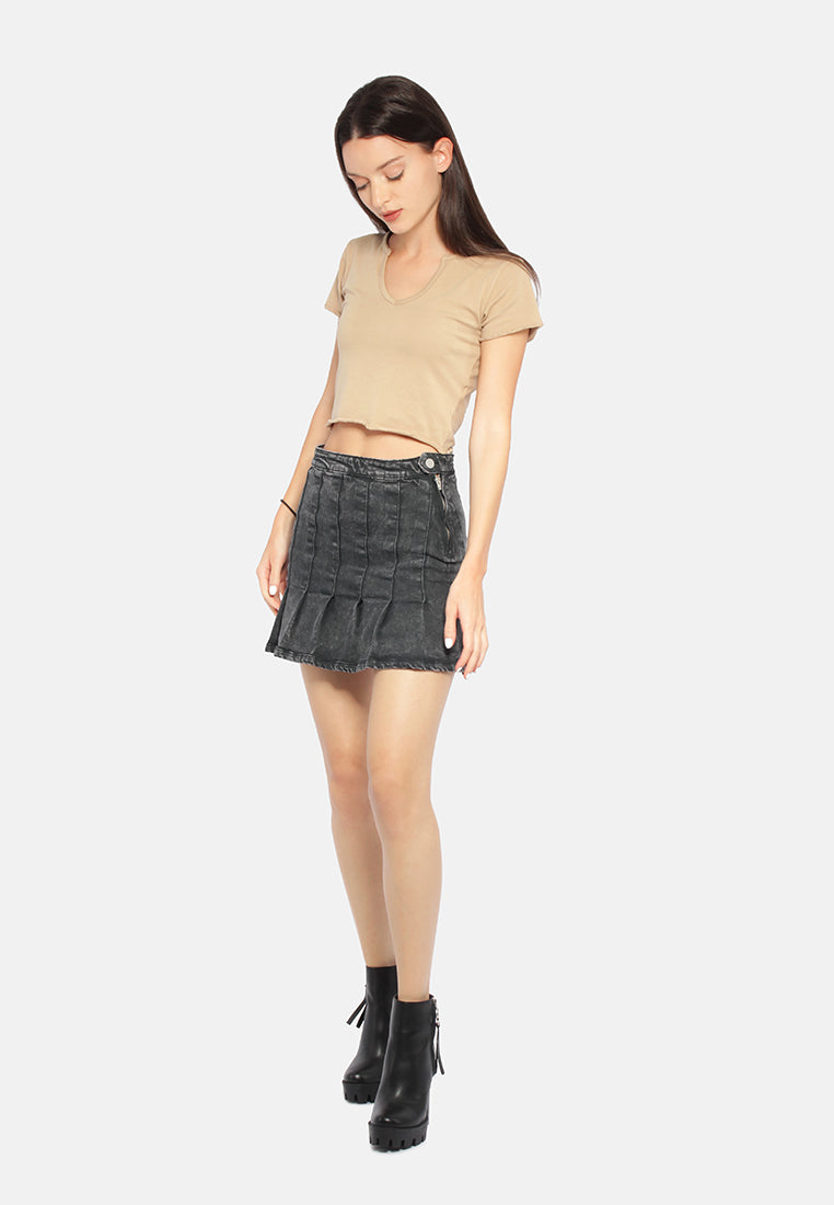 Pleated Denim Mini Skirt is so good to your skin that it enhances your appearance while keeping you at ease and comfortable. It is simple to put on due to the side zipper opening.