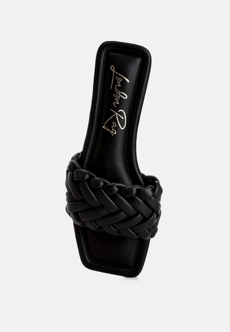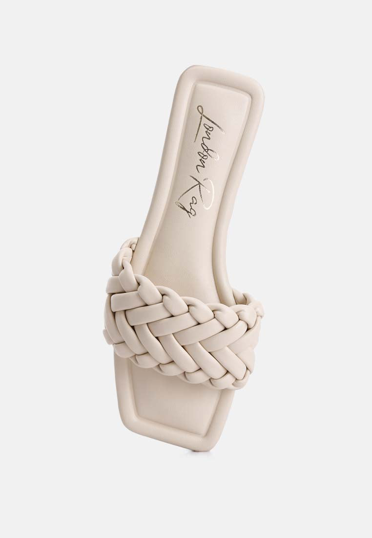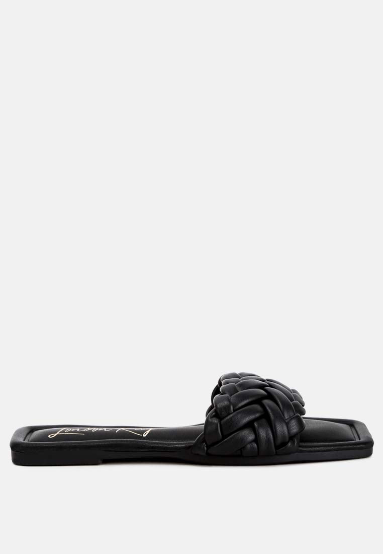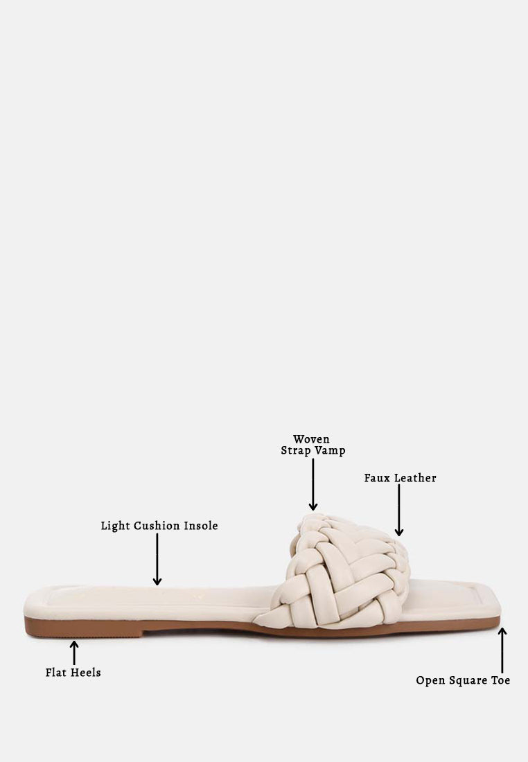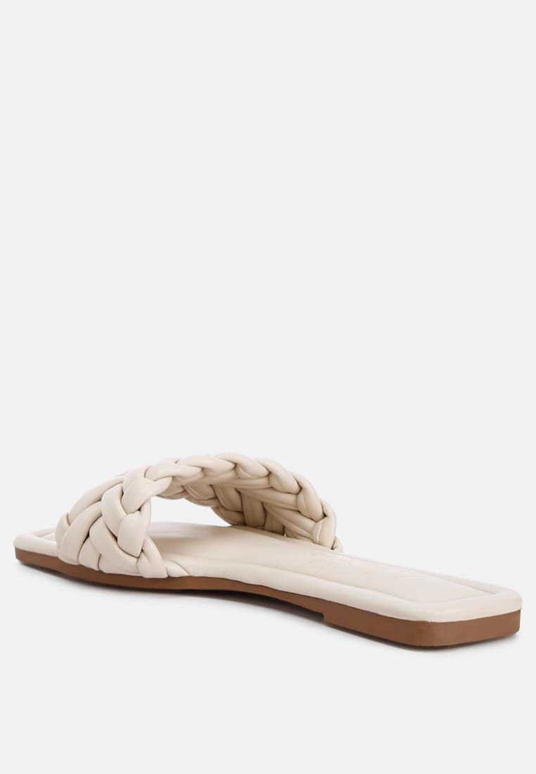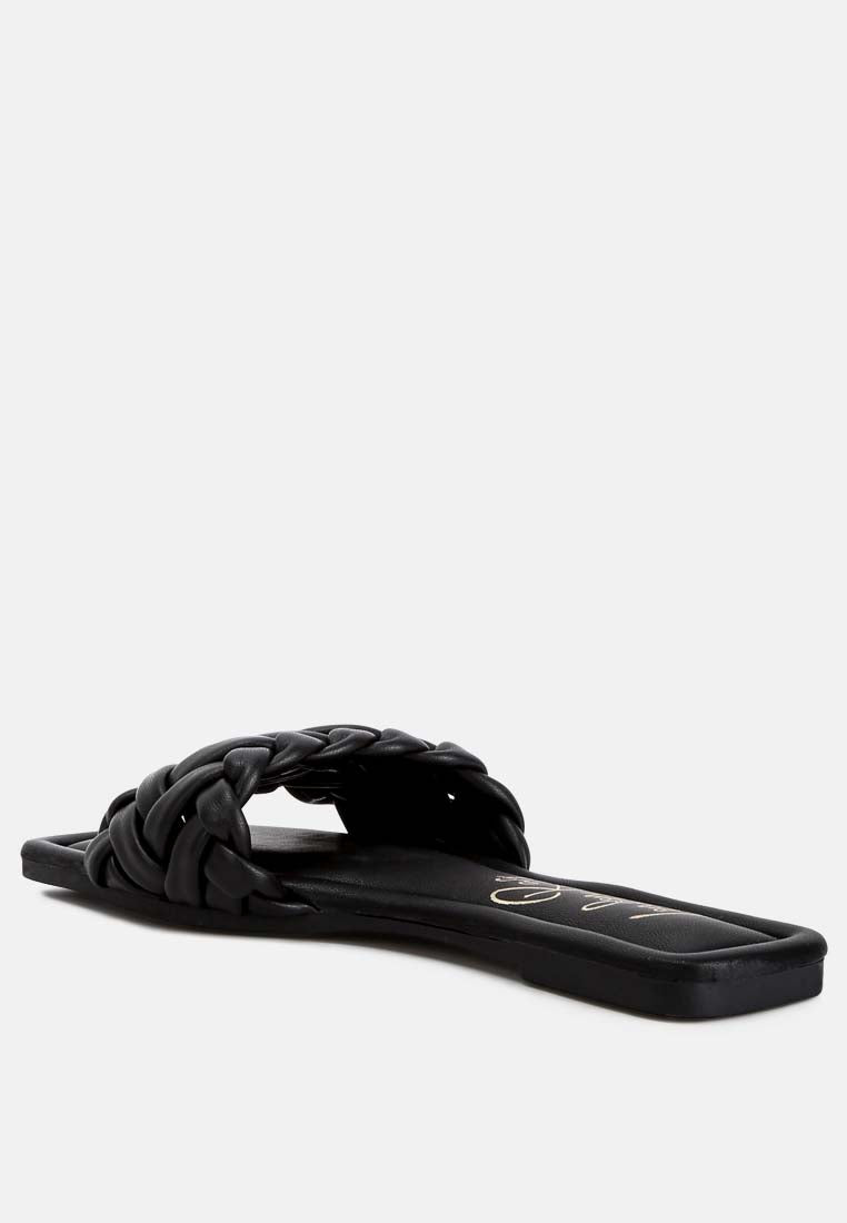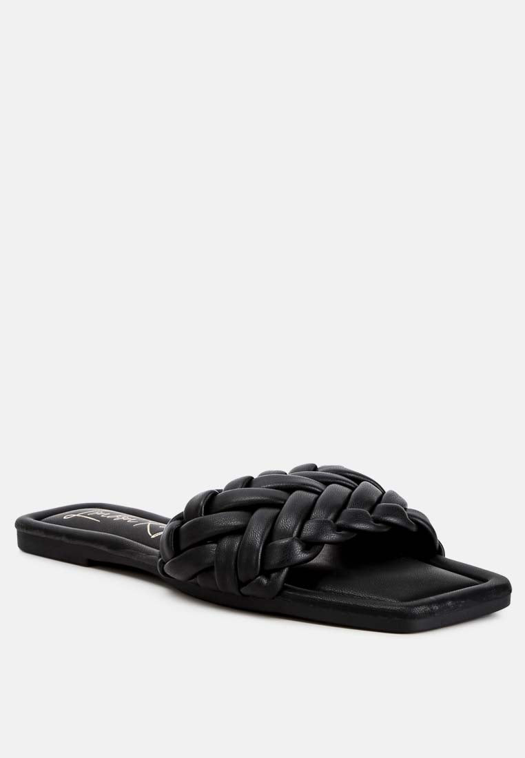 Crafted with premium faux leather and inserted with light cushion insoles, these braided everyday slip-on sandals can be paired with denim, dresses, or maxi skirts.