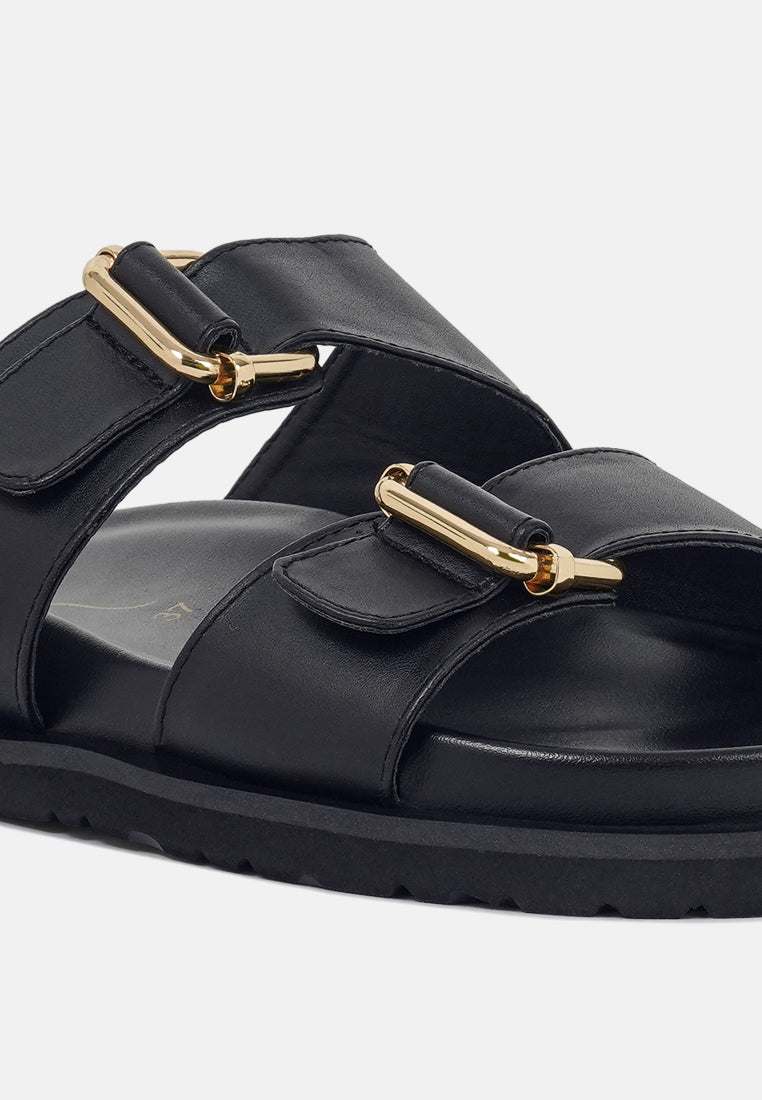 The slip-ons have a classic and chic look with a double-buckle strap detail. The slip-on design is convenient, while the flat heel ensures a relaxed walkability experience.