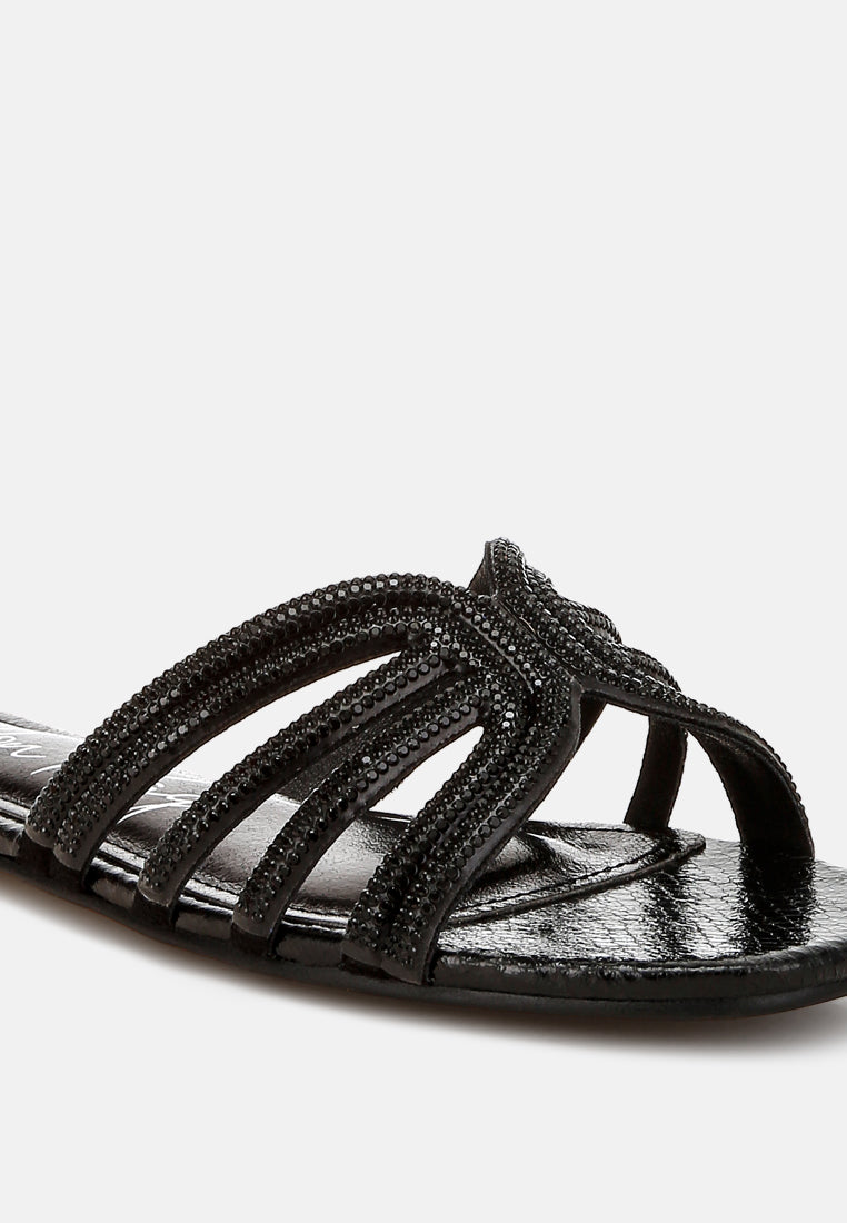 Break the monotony of boring outfits by adding these luxuriously exquisite flats to your aesthetic wardrobe. The rhinestone embellished strap with cut-out details ensures these flats look and feel easy-breezy all day, all season!