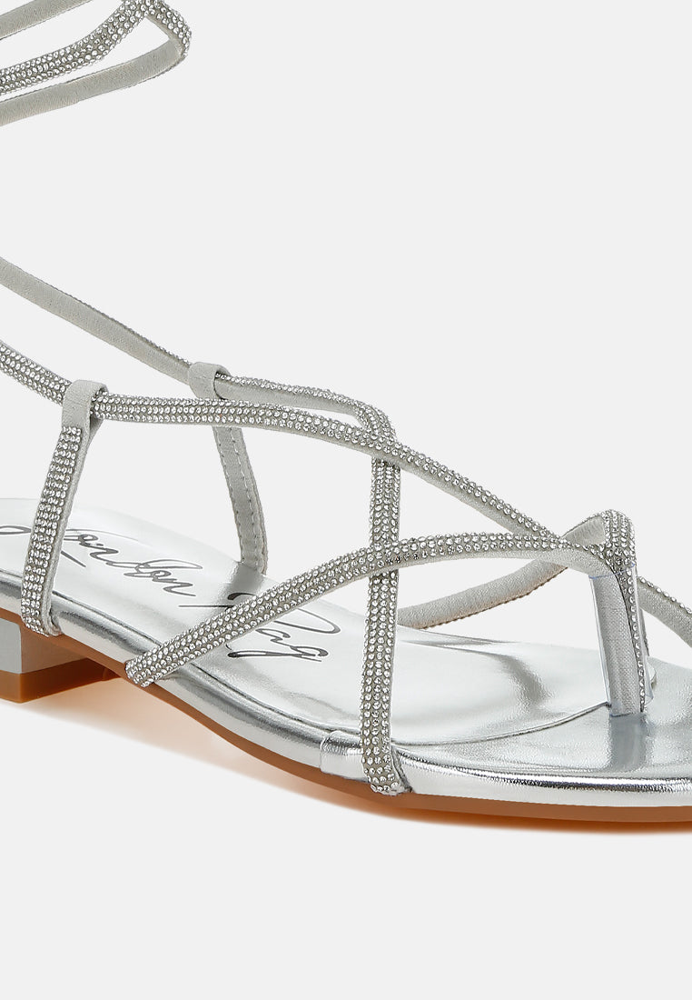 Women Rhinestone Embellished Lace-Up Sandals