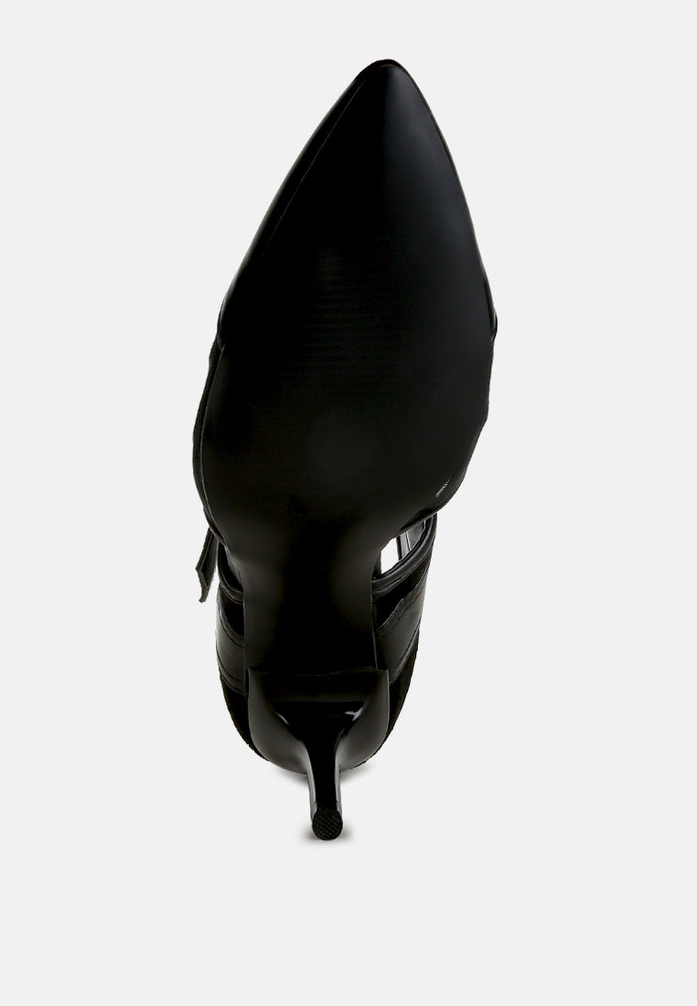 A bold statement with the distinctive pin buckle strap detail, the Heels are ravishing and sure to turn some heads. The comfortable cushion insole cuts strain while the mesh detail on the vamp looks stylish.