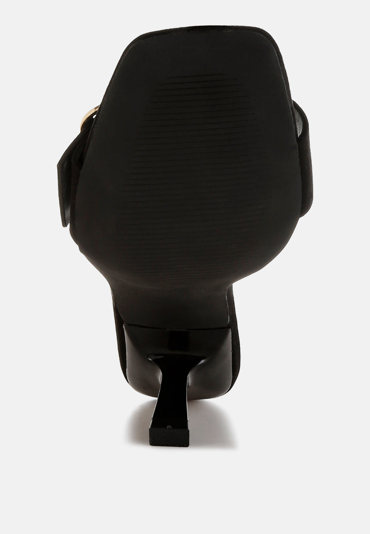 The slip on sandals are chic and trendy with the pin buckle strap and slim heels. The pair is stylish and comfortable with the low heel and extra comfortable cushion insole which cuts strain and offers a relaxed fit. Pair them with a beautiful minimal cocktail dress or with your basic to give them a sophisticated flair.