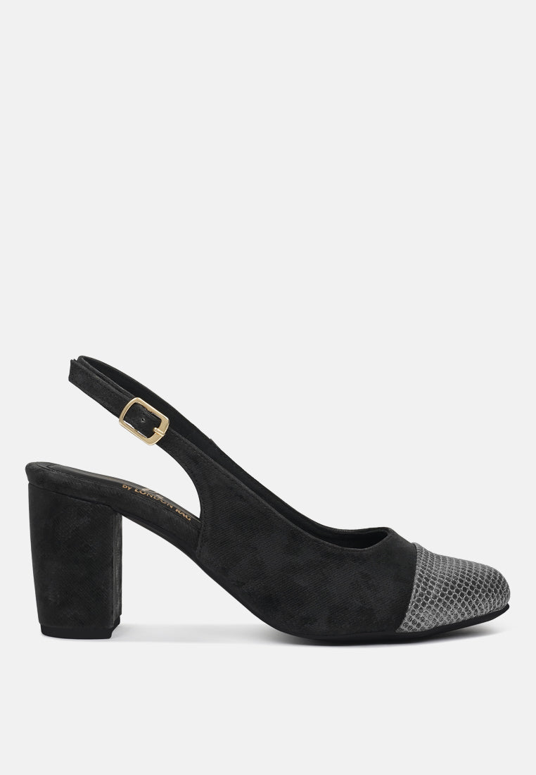A little polish, a little edge — these slingback heels strike the perfect balance. With their sleek finish, metallic toe accent, and comfortably lifted block heel, they’re made to complement everything from tailored workwear to evening plans.