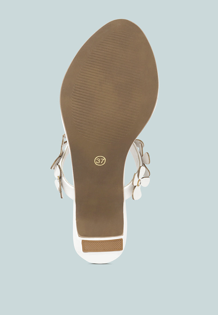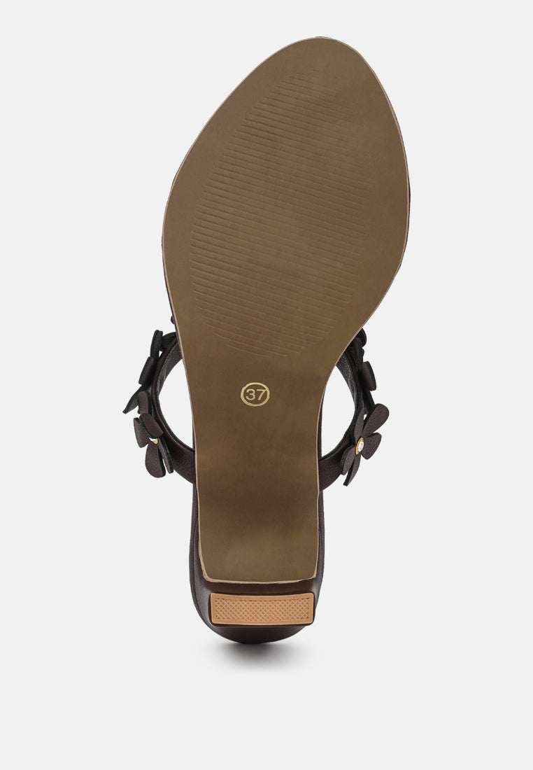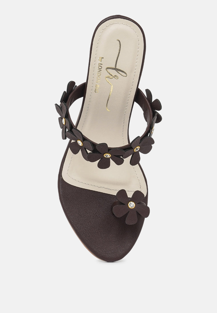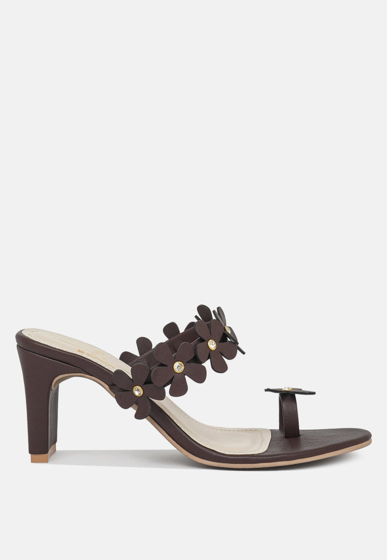 A mix of comfort and character, these sleek block heels come with a playful toe-ring strap topped with floral accents. The soft cushioned insole keeps them wearable, while the diamante details give just the right pop. Dress them up or down—a stunning pair you'd never regret slipping on.