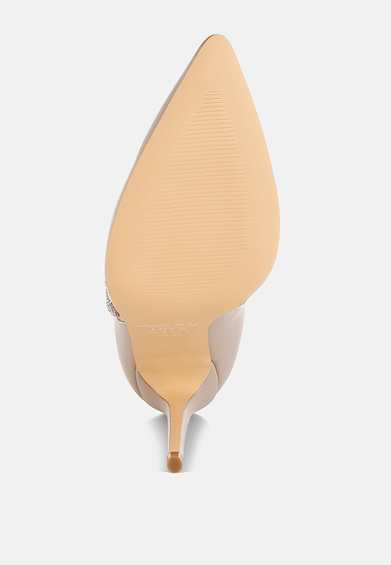 The ankle boots have a glamorous charm with the rhinestones embellished chain detail which gives them a unique glam look. The stiletto heels are stylish while the zipper closure is convenient. The comfortable cushion insoles cut strain and offer a relaxed fit.