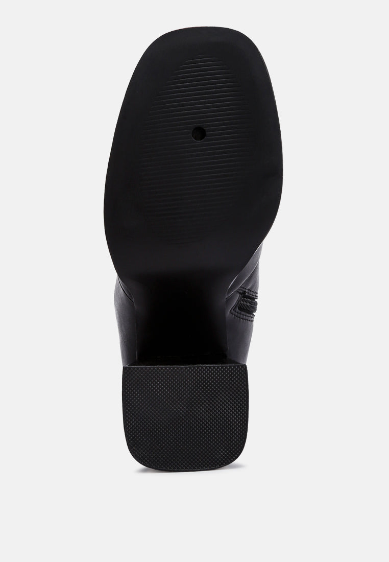These boots are where punk meets panache. The faux leather adds an edgy vibe, while the stylish design with a closed square toe and stacked block heels make them event-ready throughout the year. Perfect for those who like to walk on the wild side of fashion.