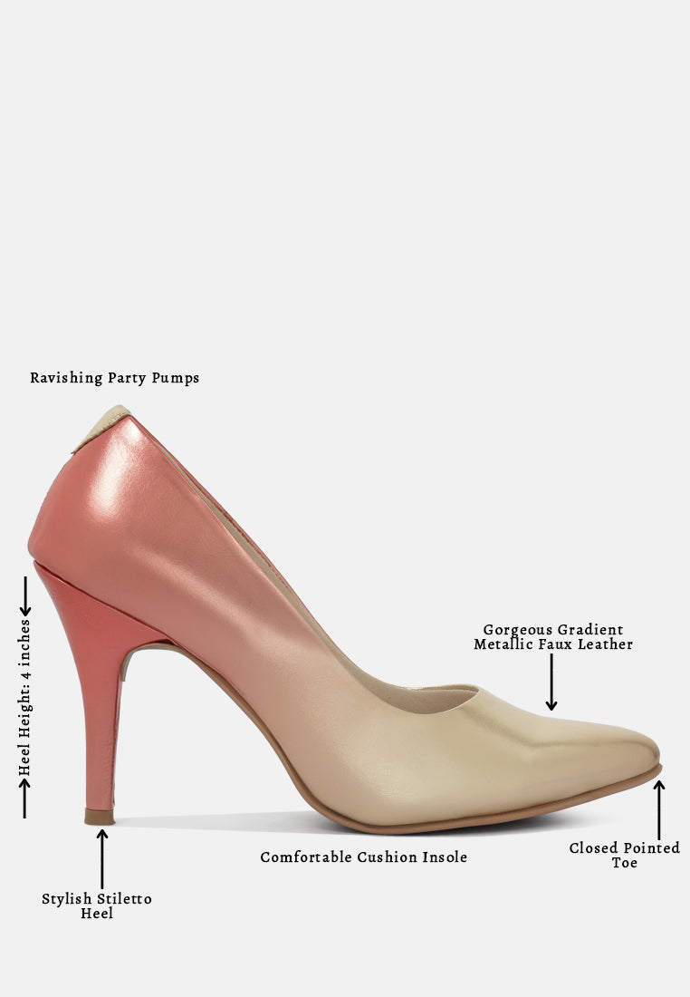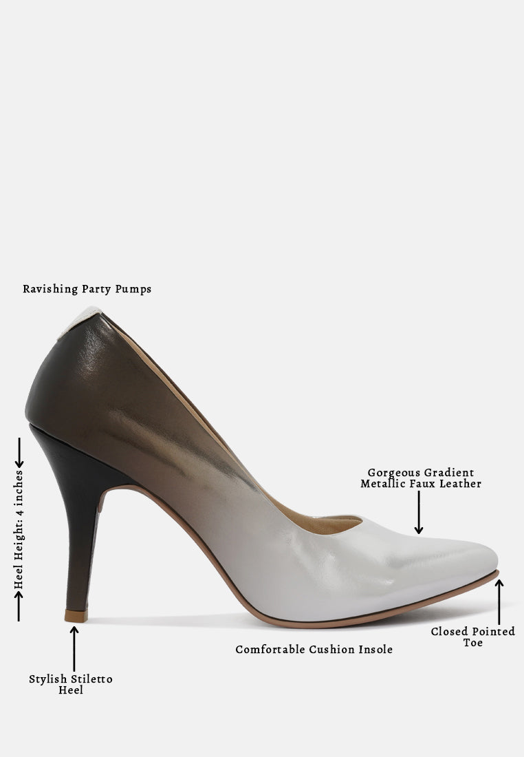 These pumps bring a soft metallic ombre shine that works for both office hours and nights out. The pointed toe keeps it classic, the 4-inch stiletto adds just the right height, and the cushioned insole makes them surprisingly easy to stay in. Clean, sleek, and designed to feel as good as they look.