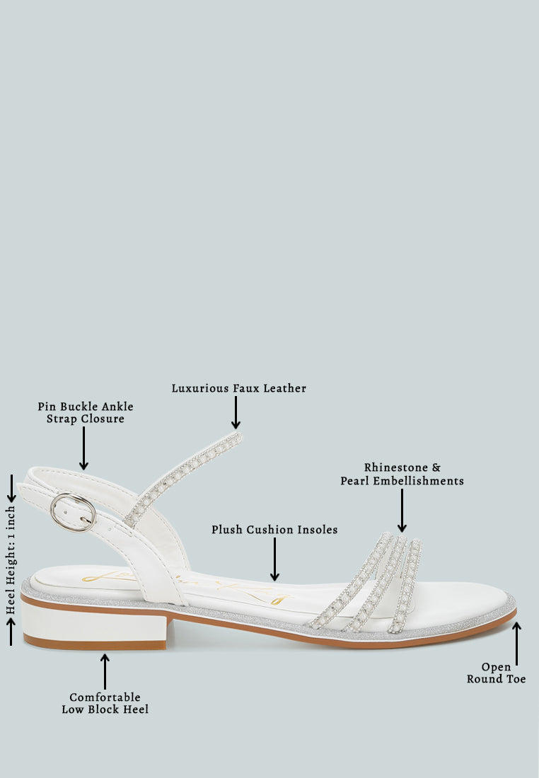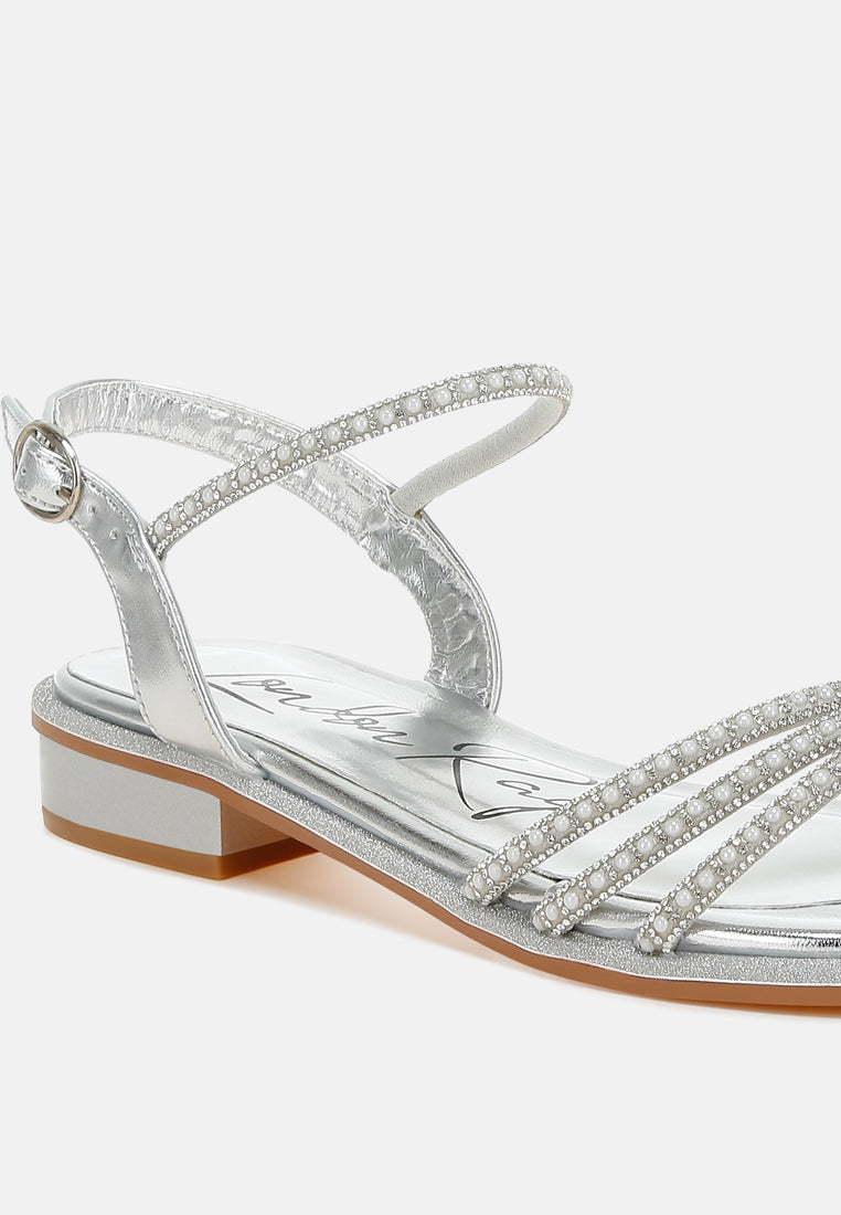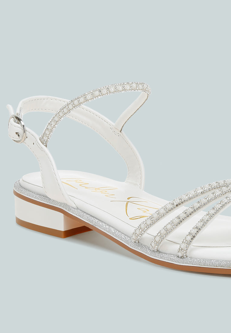 Women Rhinestone Pearl Detail Flat Sandals