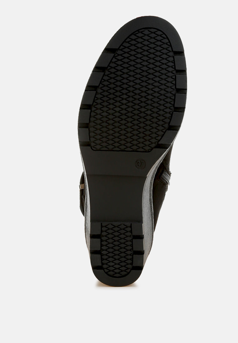 The high ankle boots are edgy and bold with the harness detail and faux fur collar! The cushioned insole and low wedge heels offer a comfortable and relaxed fit. Pair these with London Rag clothing for the best ensembles!