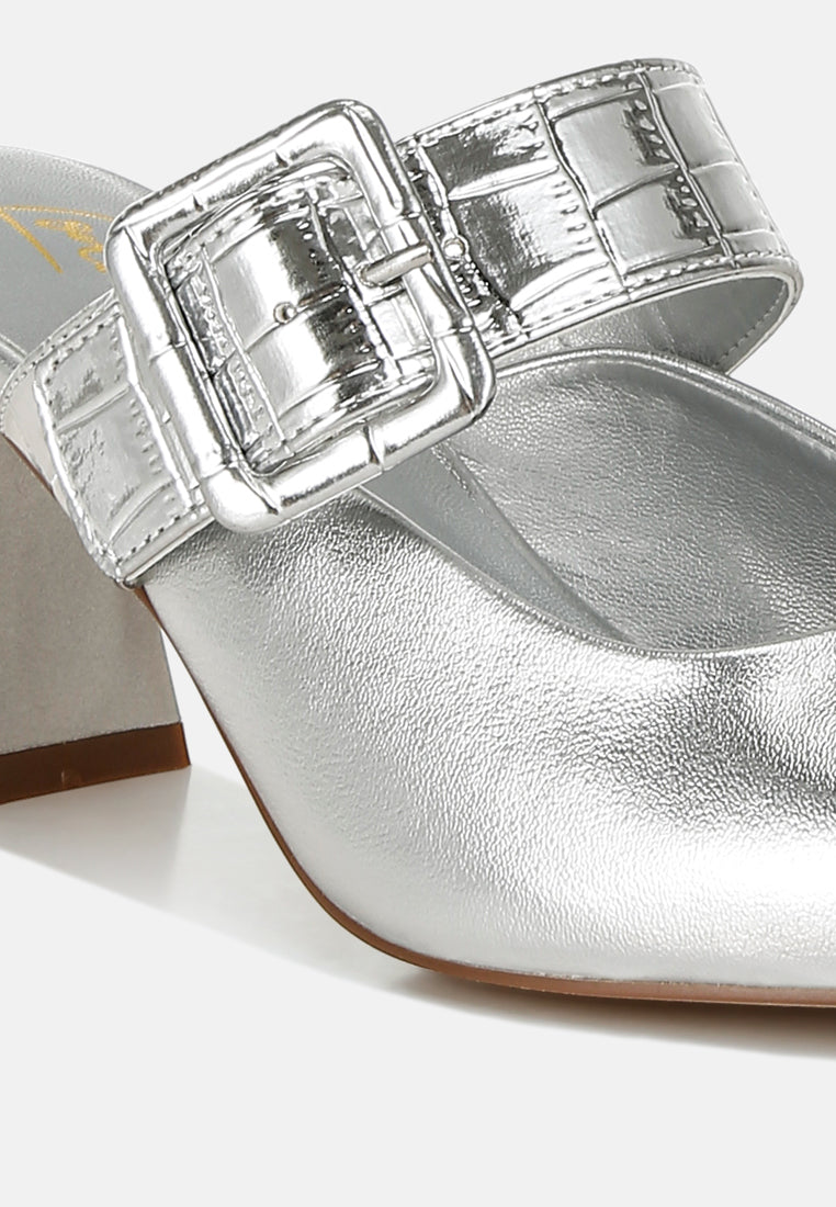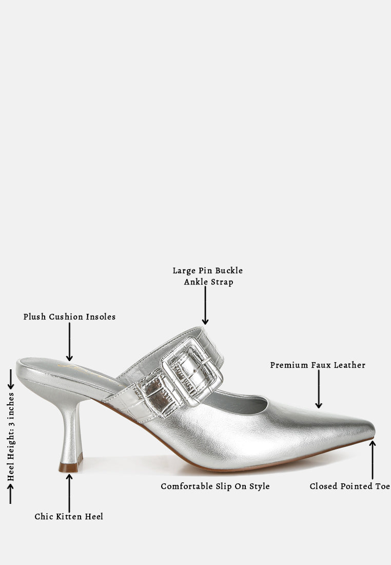 Women Large Buckle Kitten Heel Mules