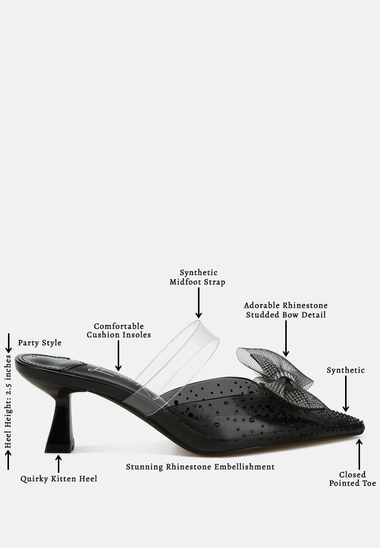 embellished bow kitten heels