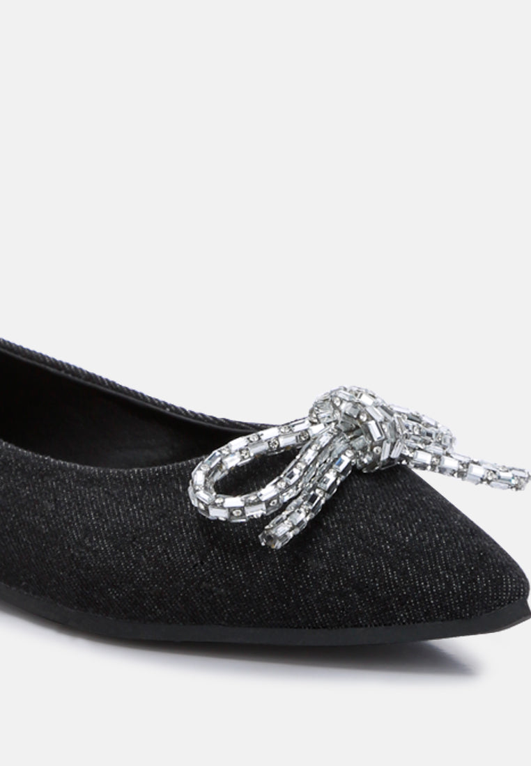 Add a touch of bling to your everyday ensemble with these rhinestones embellished bow detail ballerinas. The denim ballet flats are casual and comfortable with light cushion insoles and the rhinestones just elevate the visual aesthetics adding a bit of fun.