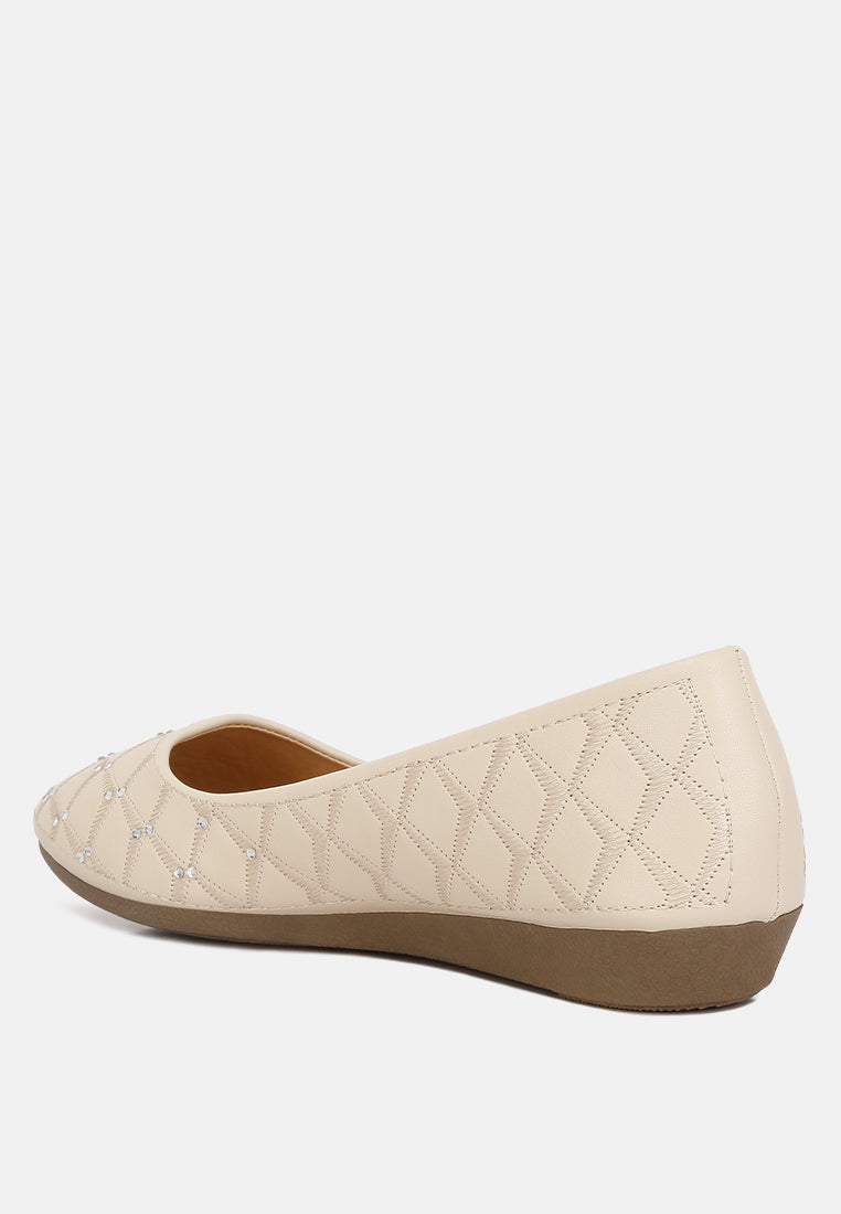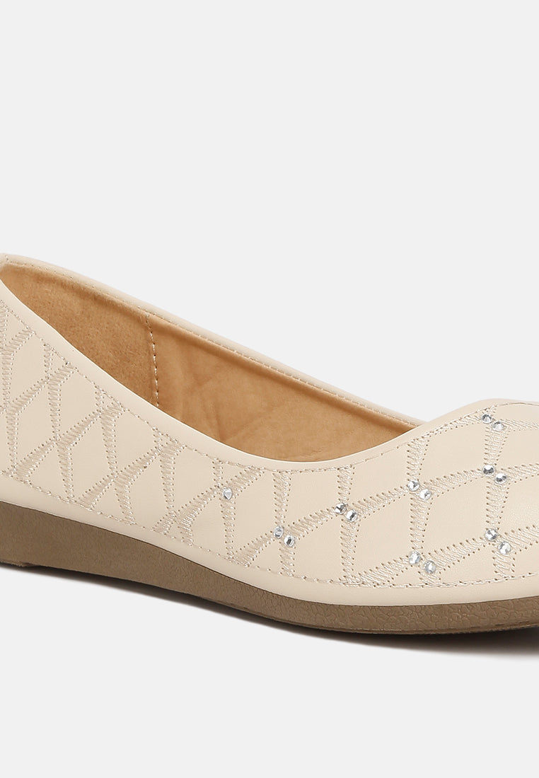 women rhinestone embellished ballerinas#color_beige