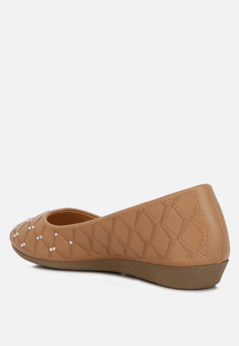 women rhinestone embellished ballerinas#color_tan