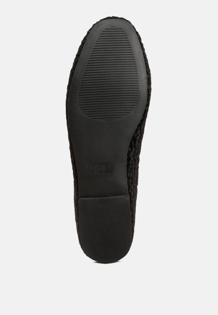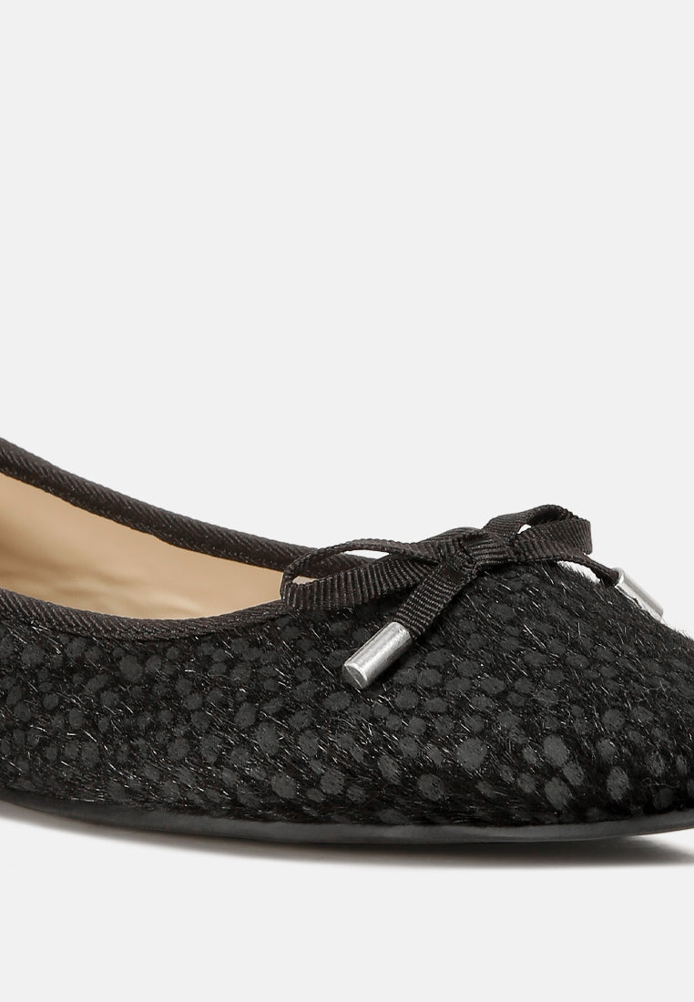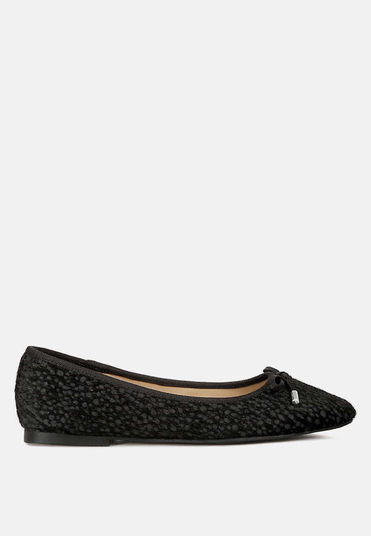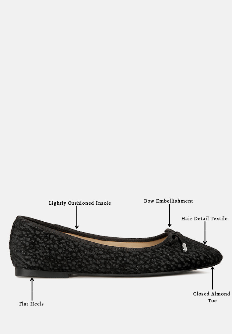 An eccentric and chic style, the hair detail definitely makes a distinctive impression. The bow embellishment gives depth to the ballet flats. The footwear is easy to wear and gives a relaxed fit with the lightly cushioned insoles.
