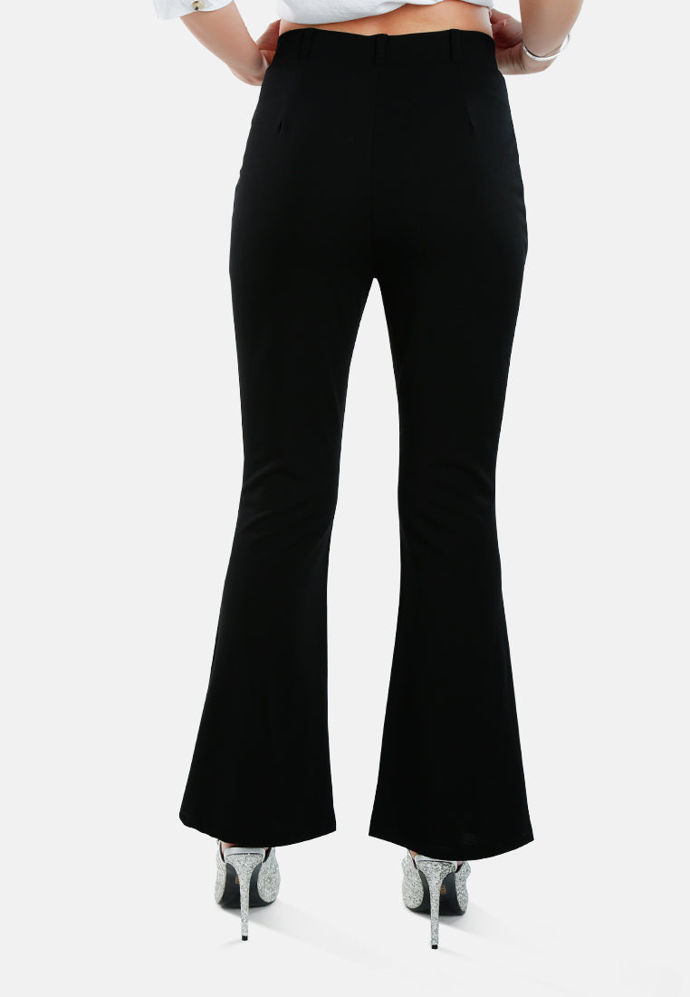 Upgrade your wardrobe with our Flared Cut Trousers, a versatile addition that exudes timeless elegance and effortless style. These impeccable trousers seamlessly blend modern sophistication with classic chic, making them a must-have for every fashion-savvy woman.
