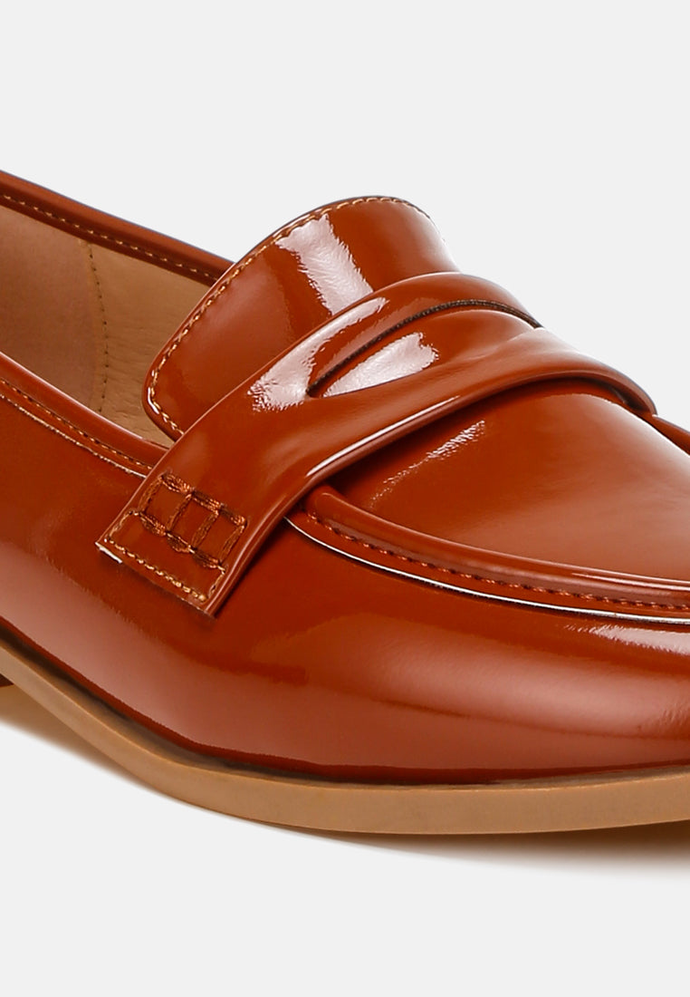 Crafted with sleek patent faux leather, these loafers add a touch of polish without feeling muggy. The closed round toe keeps things comfy, while the flat heel ensures you can conquer your day (or night) without breaking a sweat. Plus, the insoles come with comfortable cushioning.