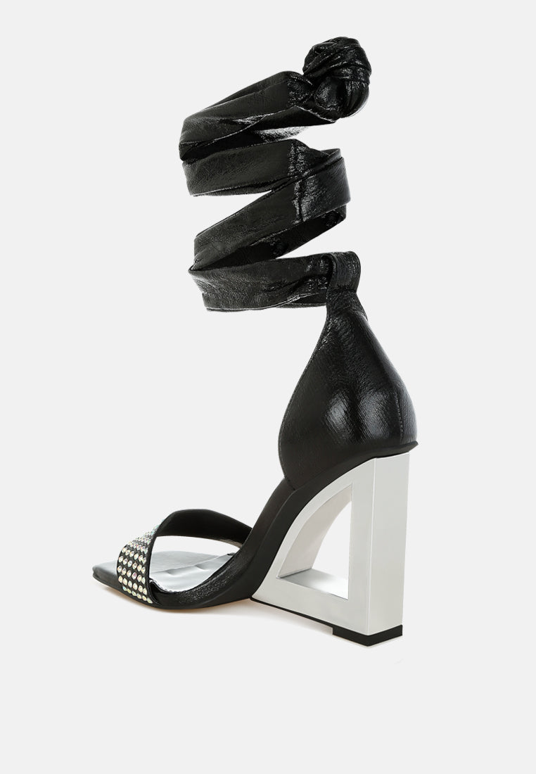 hashira ab rhinestone studded lace-up fantasy heels#color_black