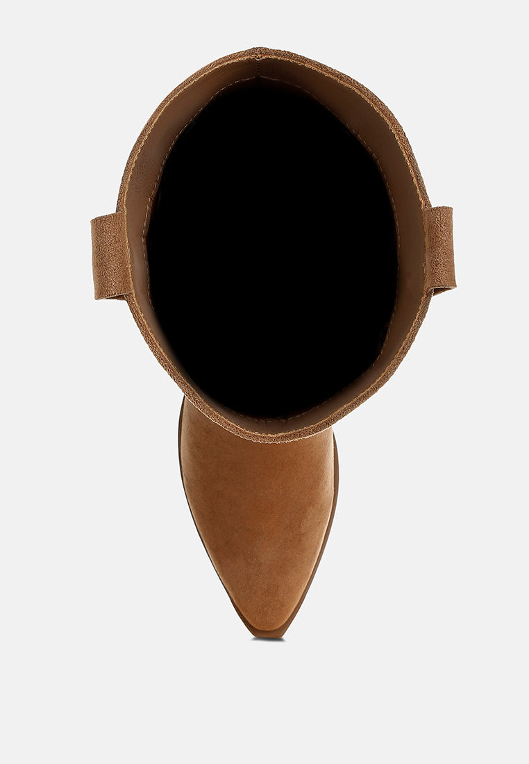 The boots have a straight out of the West chic flair with the classic cowboy construction. The stud embellishments give the boots an extra visual edge while the low block heel and comfortable cushion insoles cut strain.