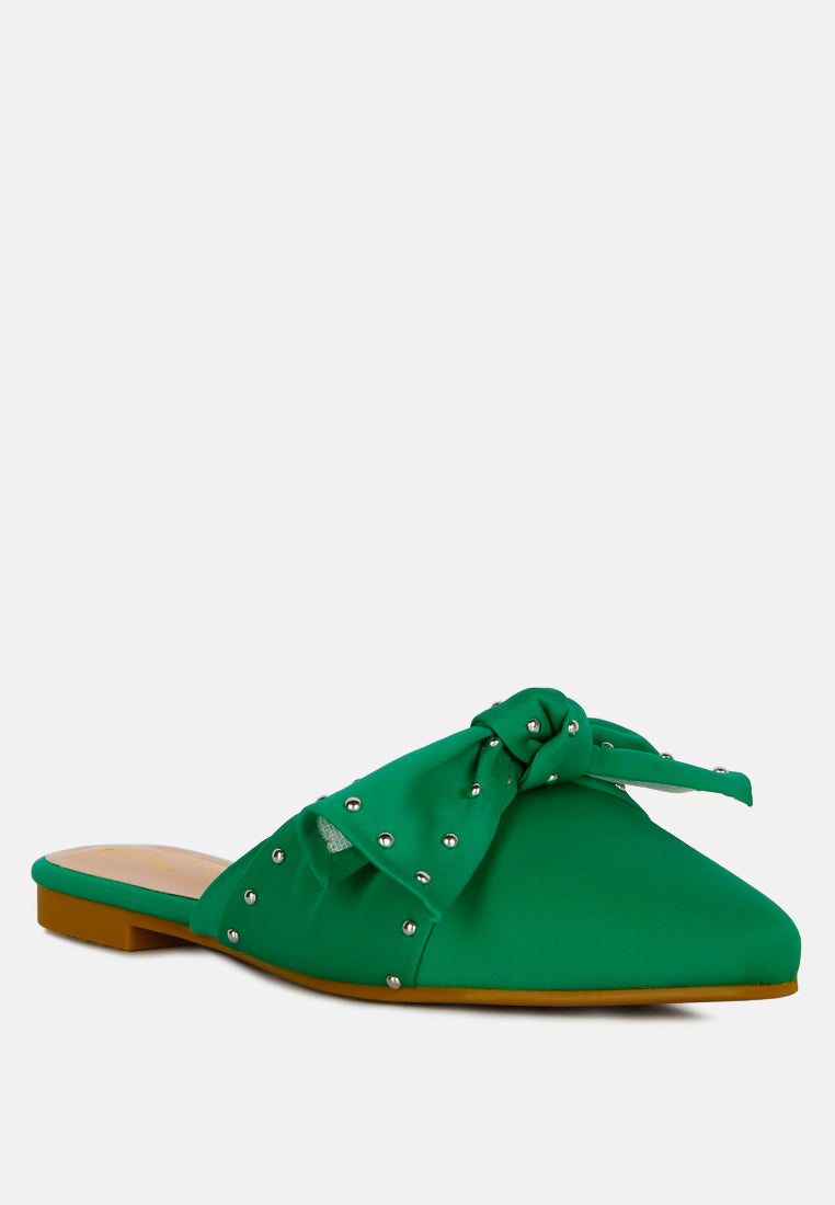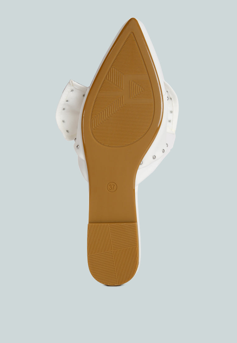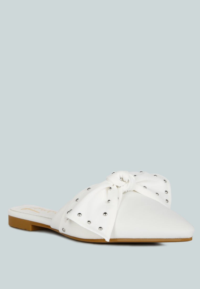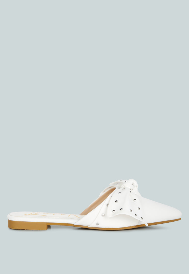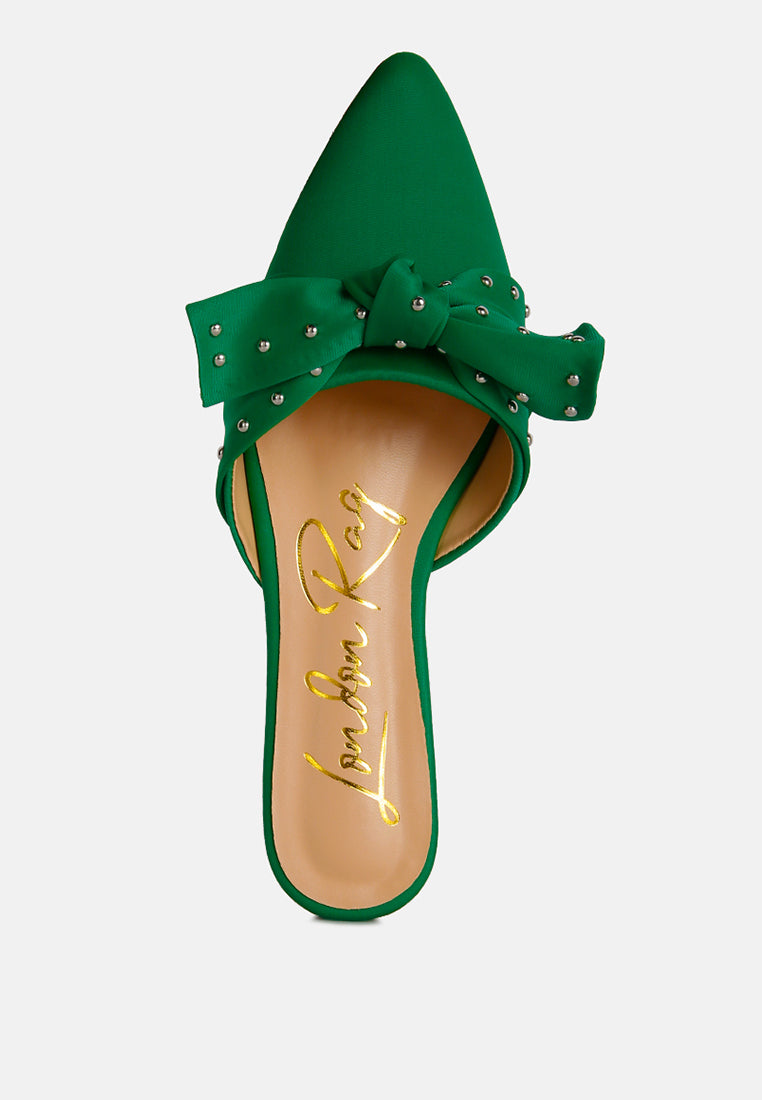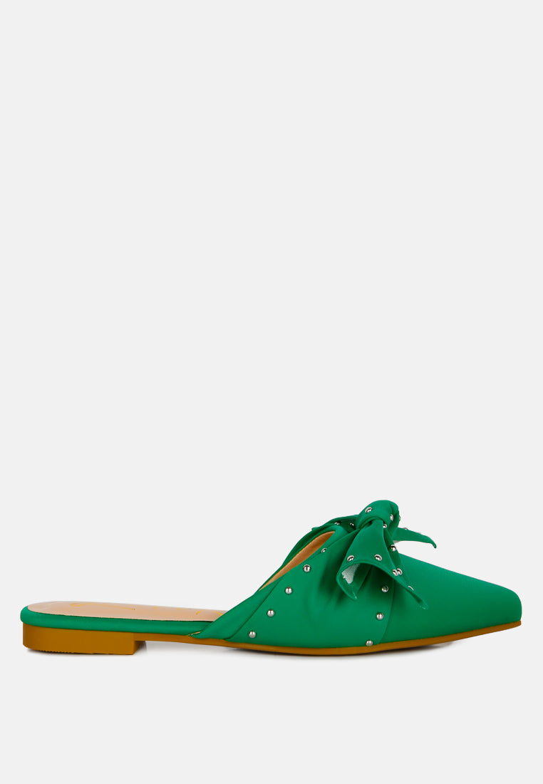 Studded Bow pointed toe mules are for all day wear and you can carry these with most of your casual outfits. Lightly cushioned and with construction that is super comfortable.