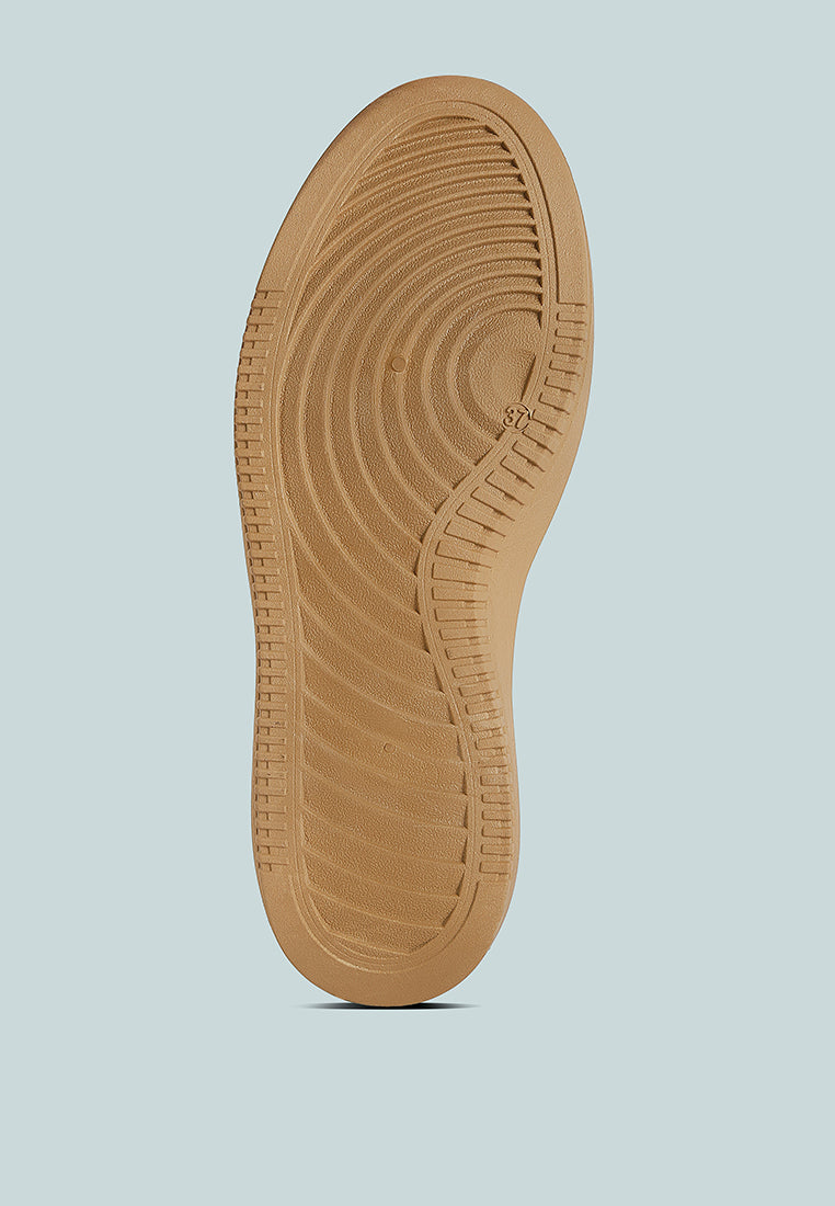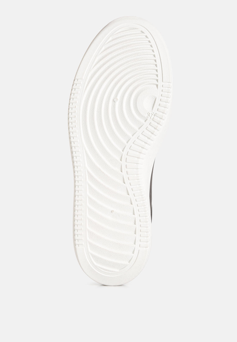 Solid sneakers boasting unique stitch detailing and elevated flatform lug soles epitomize fashion-forward footwear. The intricate stitching adds a distinct touch, elevating these kicks beyond the ordinary. Meanwhile, the chunky flatform lug soles offer a bold statement while providing reliable traction and comfort.