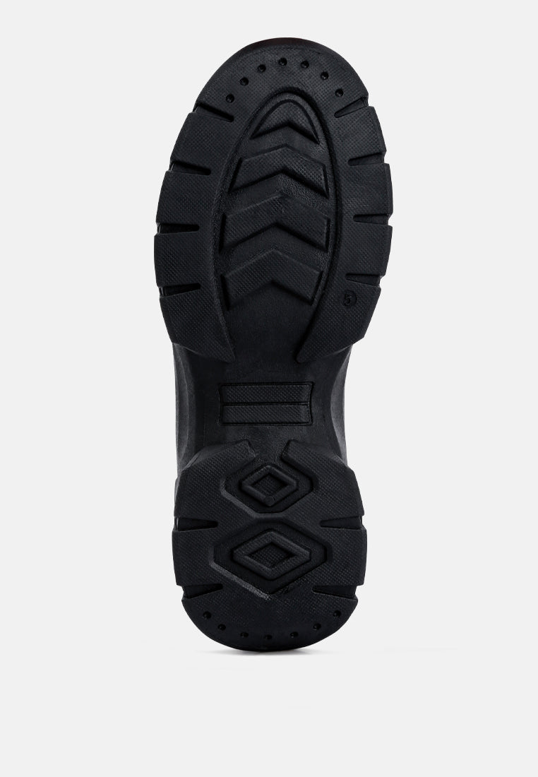 Step out in style with our Chunky Lace Up Boots! These boots are perfect for any occasion, from running errands to a night out in town. The comfortable lug sole will keep your feet feeling supported and cushioned all day long, while the lace-up closure ensures a perfect fit, and the stylish design will turn heads wherever you go.