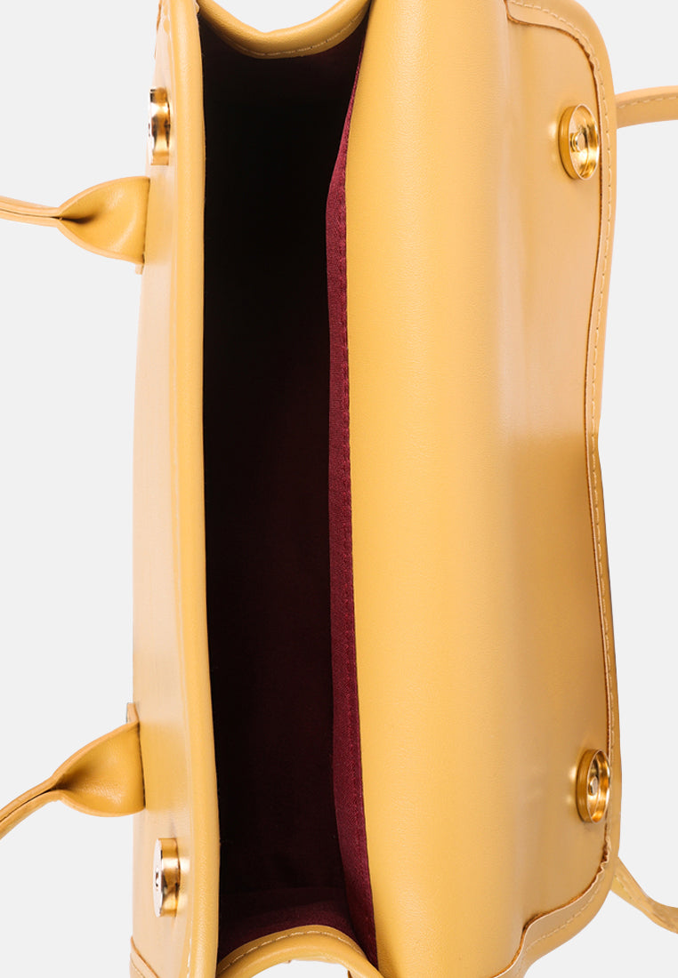 The basic bag is ideal for casual or daily wear with one compartment. The faux leather charm on the two-strap handle is an interesting addition. The bag is a staple in your wardrobe.- Type : Hand Bag