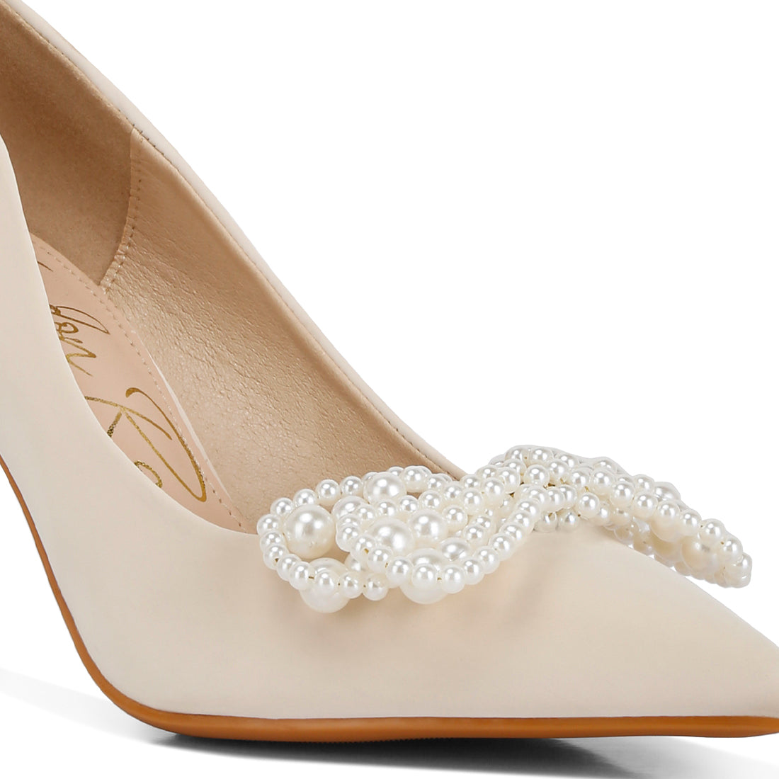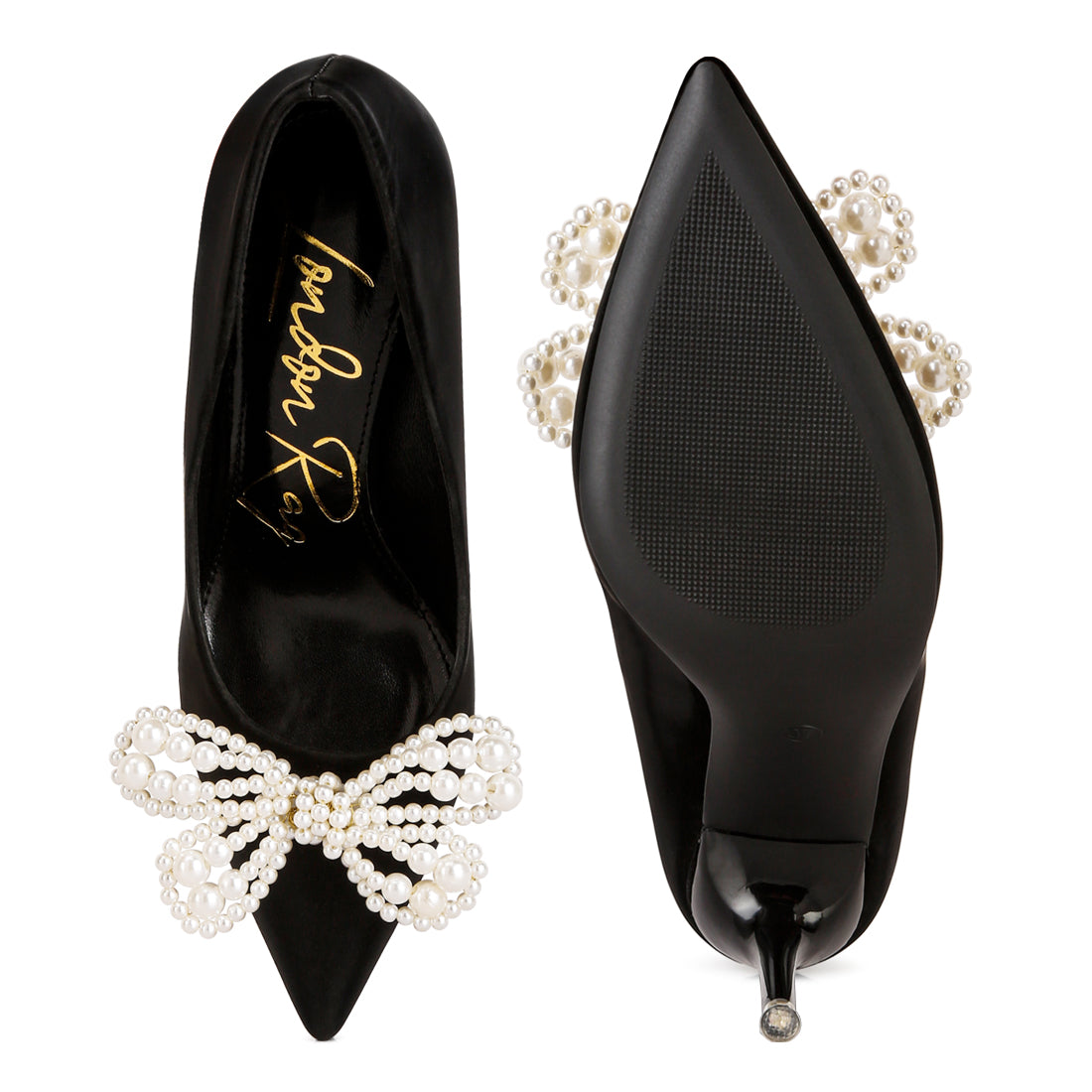 Party wears a high-heeled casual stiletto sandal with metal shiny heels and faux pearls flowers on top. Has cushioned insole which absorbs great strain.